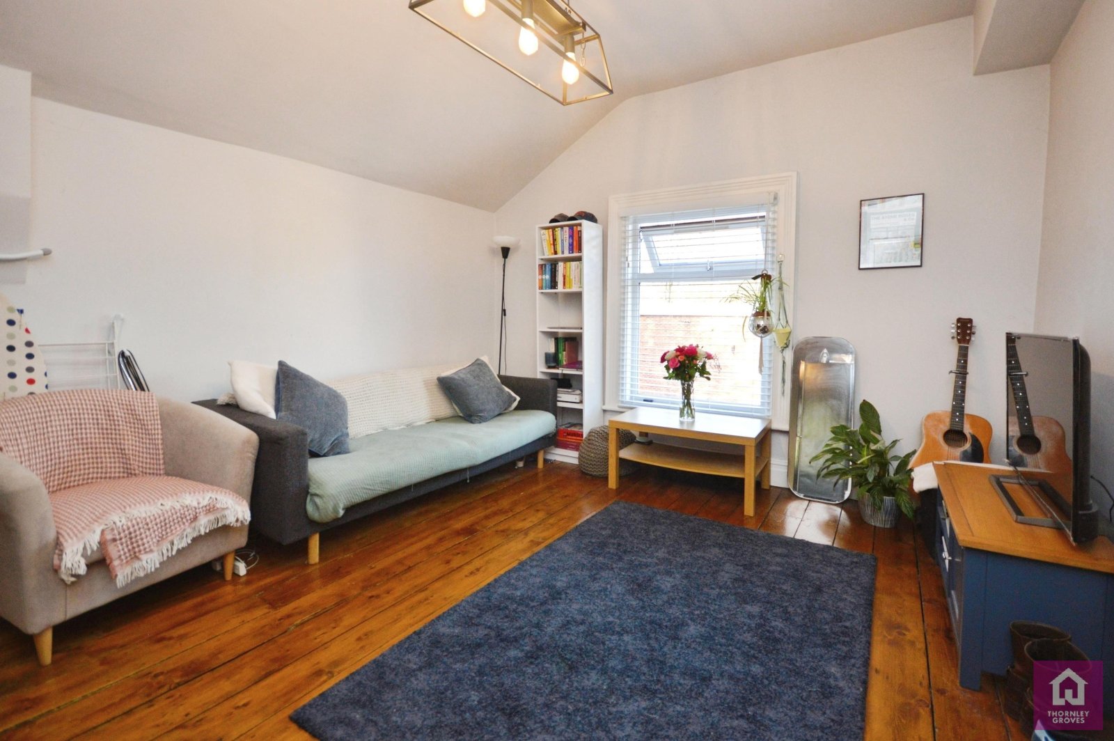 Internally, the apartment features a welcoming open-plan living space leading into a modern kitchen area, creating a bright and sociable layout. There is a separate shower room and a generously sized double bedroom positioned to the rear of the property.