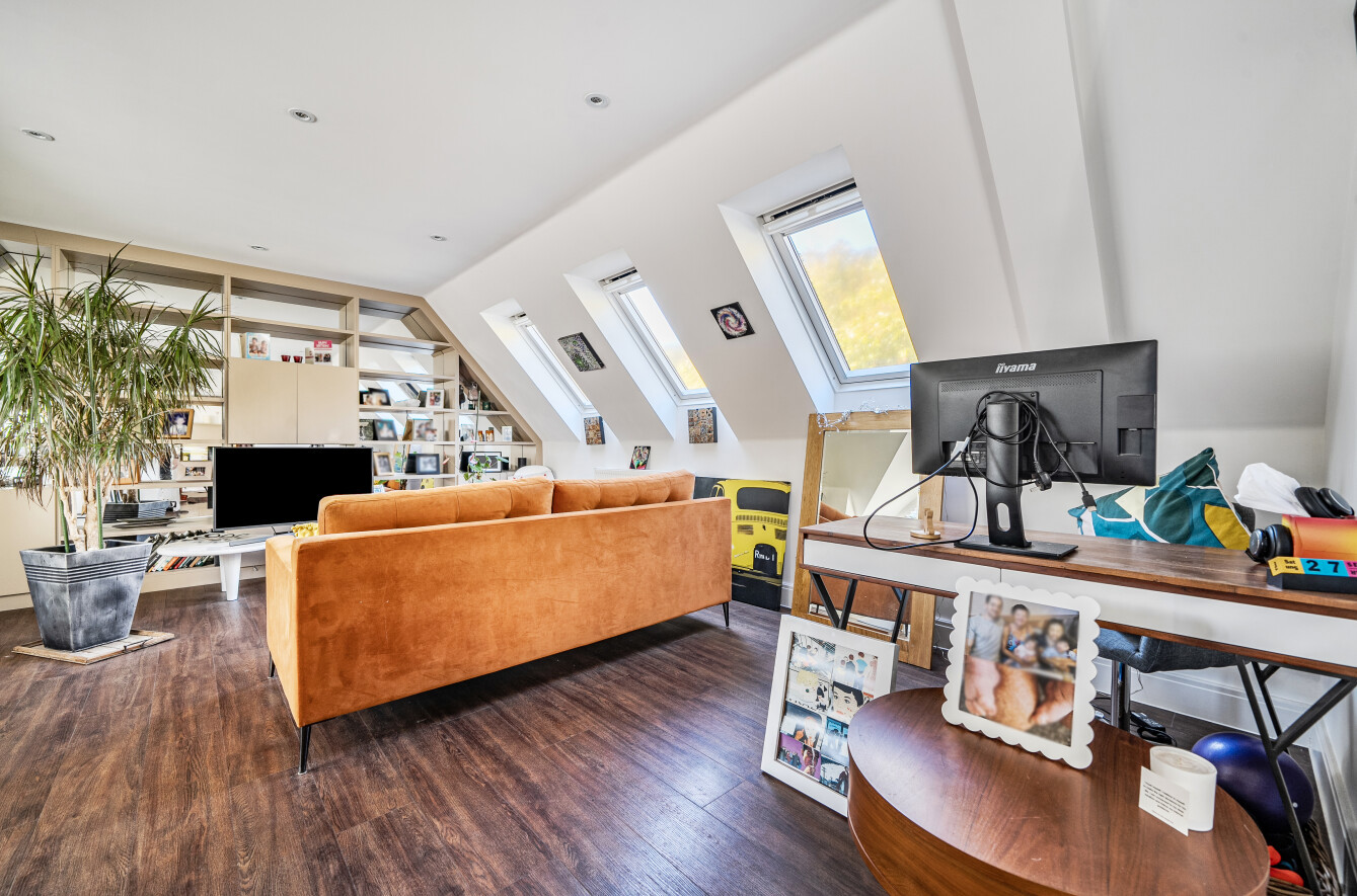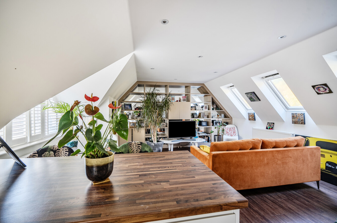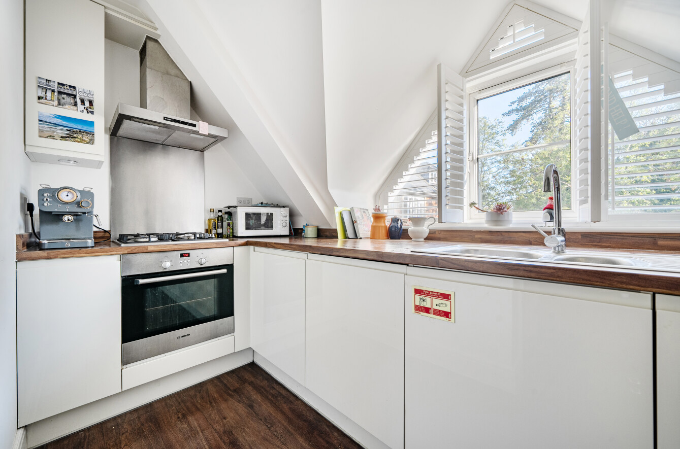 From the ground floor entrance hall, stairs rise to the first floor hallway and leads to the open-plan living accommodation, which is contemporary and light throughout. The kitchen/sitting/dining room enjoys a dual aspect with slanted windows positioned to allow as much natural light into the property as possible. The fitted kitchen features a range of smart units and integrated appliances with complementing work surfaces. The well-appointed bathroom is modern and benefits from both a bath and separate shower. The main bedroom is generously proportioned and has built-in wardrobes, as well as fitted furniture and storage space.