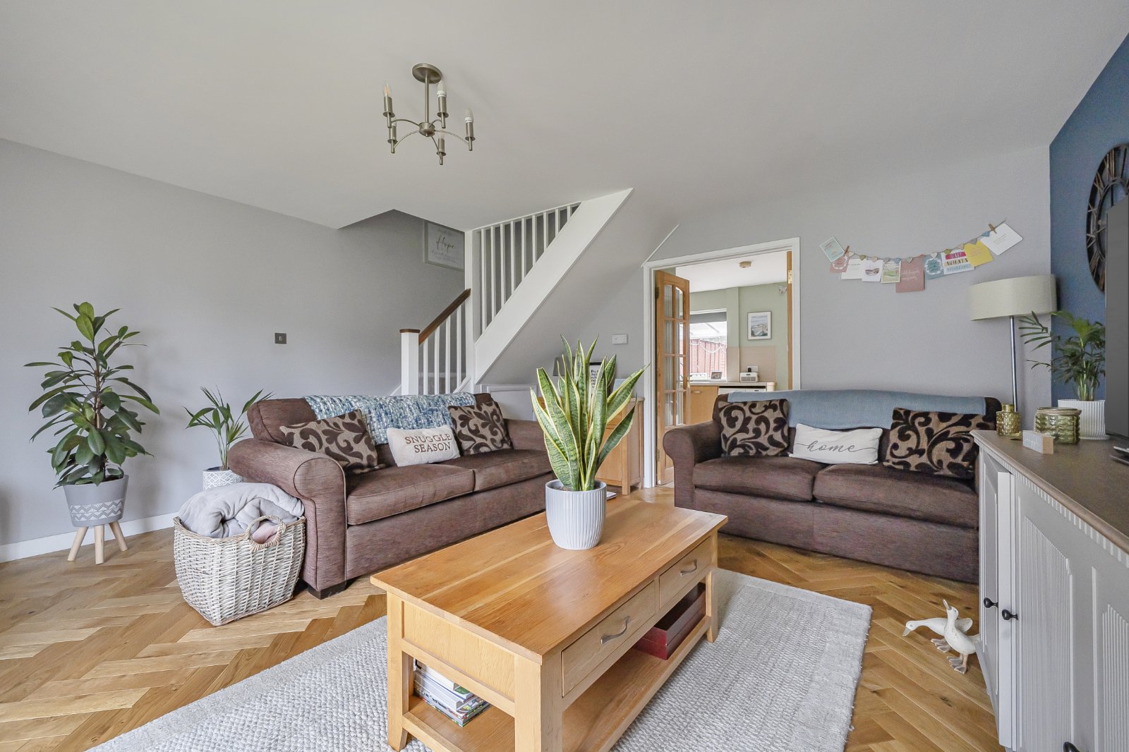 On the ground floor the entrance hall as access to a conveniently placed WC, which in turn leads into the larger sitting room with window to the front garden, an attractive brick-built fireplace can also be found in this impressive room. The open-plan kitchen/dining room is positioned at the rear and is a lovely light-filled room with patio doors onto the garden. The fully fitted kitchen is well laid out and provides a range of eye and base level cupboards. The family room is situated just off the kitchen which is a lovely size - perfect for a second reception room or a playroom.