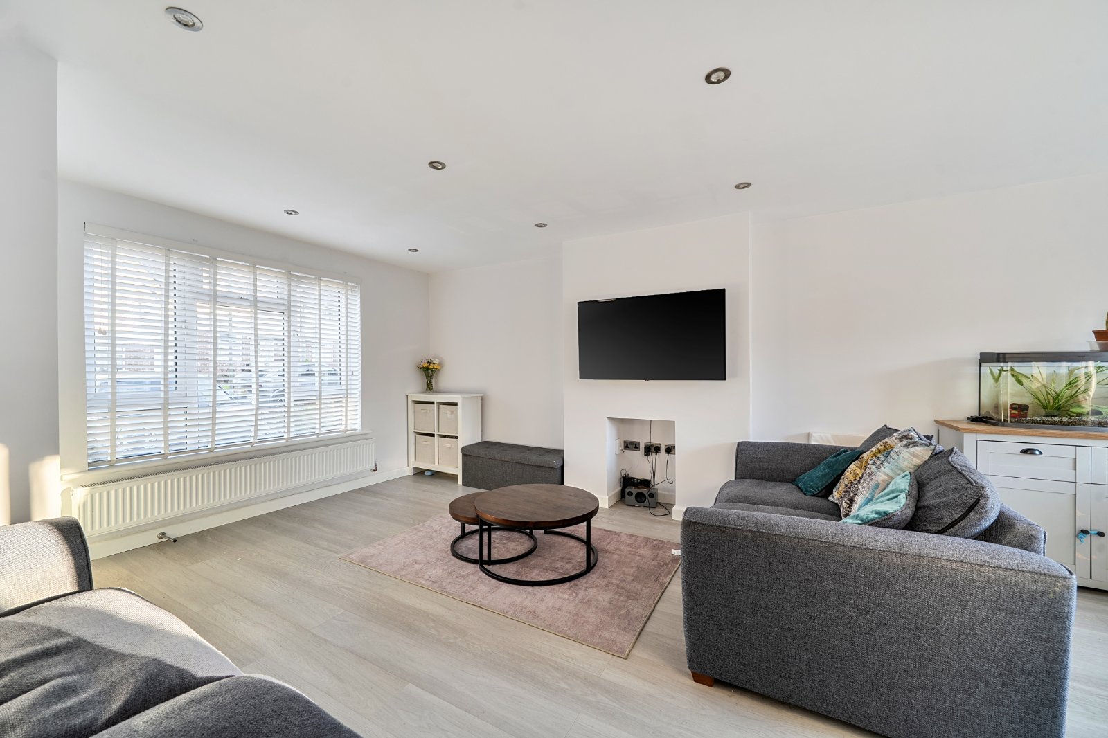 To the front, the property features a large driveway, enhancing both practicality and kerb appeal. Inside, the ground floor comprises a welcoming sitting room, complete with large windows that allow an abundance of natural light to fill the space, creating a bright and comfortable living environment.