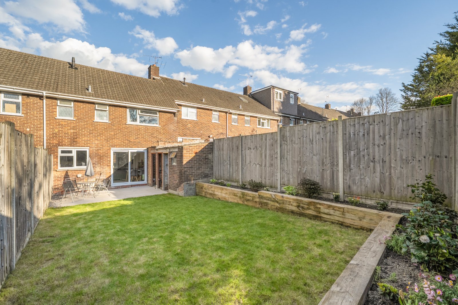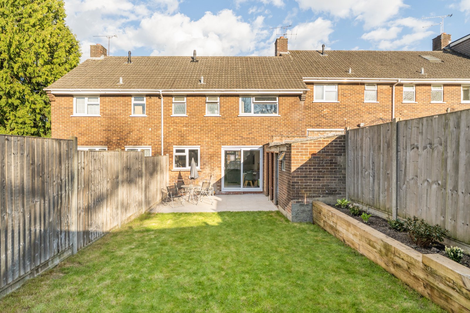 Externally, the property enjoys a good-sized rear garden, featuring a spacious patio terrace—perfect for outdoor dining, entertaining, or simply relaxing in the sun.