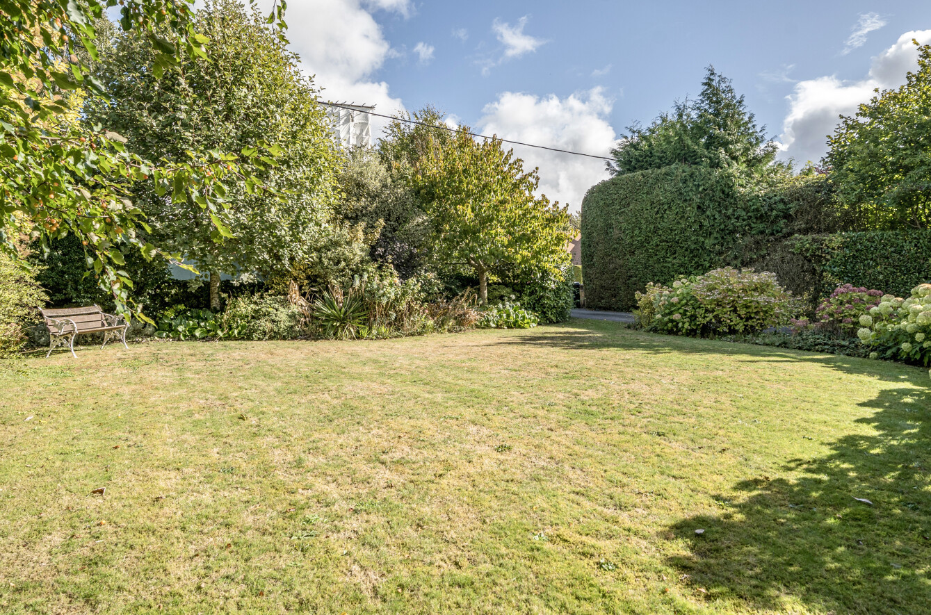 Externally, the property is equally appealing. The rear garden is private and mature, offering well-maintained lawns, established planting, and a generous terrace area perfect for outdoor dining.