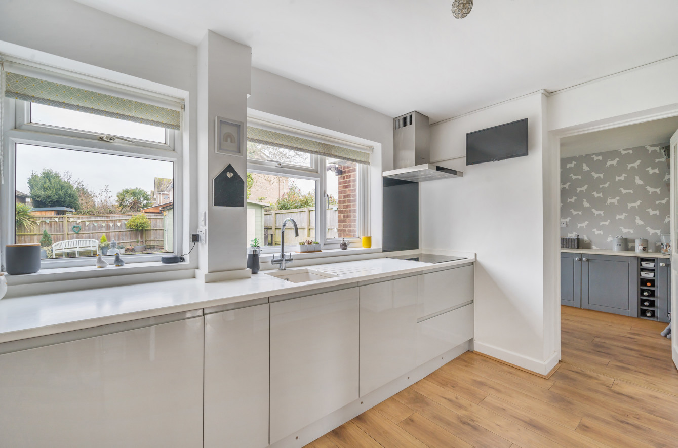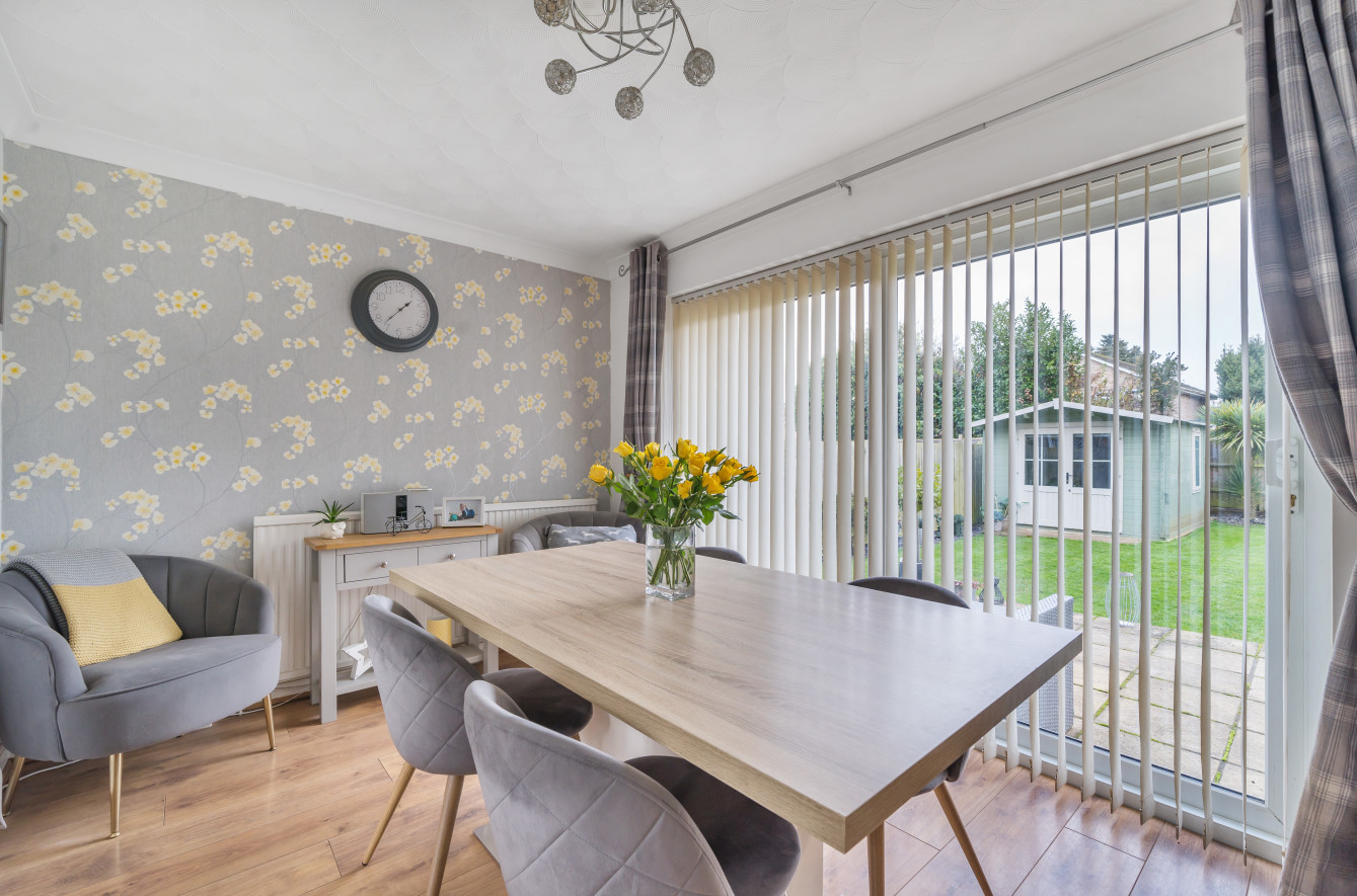 Upon entering the ground floor, a cozy sitting room can be found to the left with double doors through to the dining room. The separate dining room seamlessly connects to the spacious modern kitchen which has been modernised and extended by the current owners, featuring sleek worktops, glossy cabinets and integrated appliances.