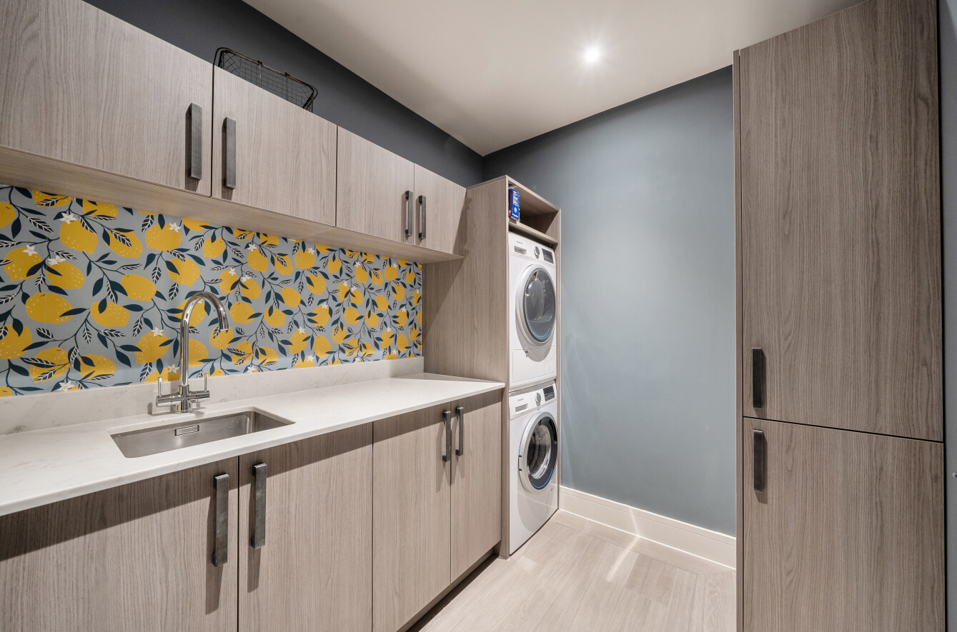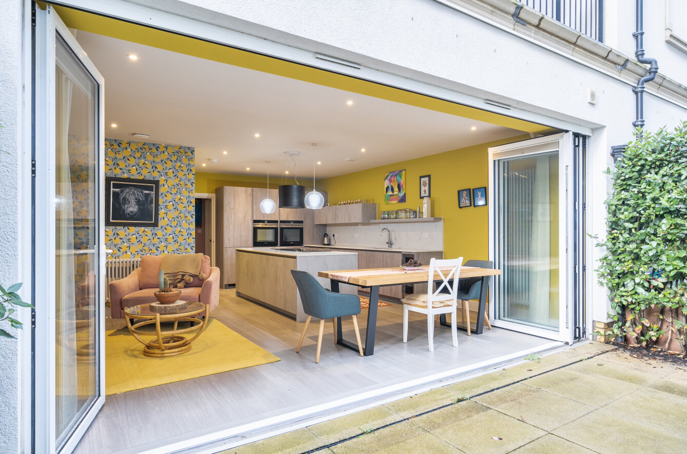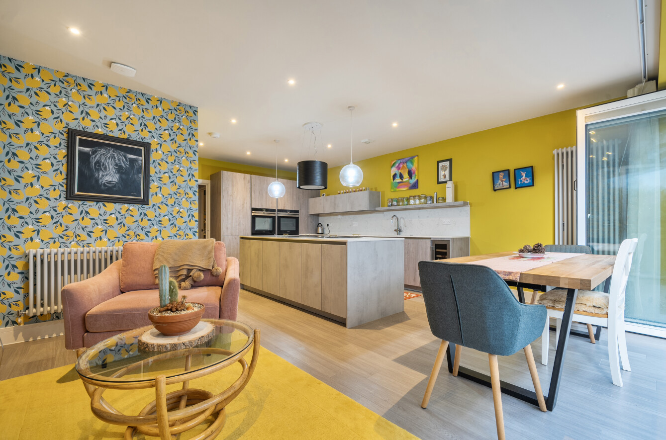 On the lower ground floor, there is a generous storage cupboard and cloakroom with a vanity basin. The utility room features both high and low-level units with a quartz worktop and cupboards, neatly accommodating household utilities. The heart of the home is undoubtedly the open plan kitchen, which lends itself to socialising and entertaining, superbly designed to accommodate both dining and relaxed seating. Fitted with a quartz work surface and including a range of integrated Siemens appliances, including double ovens, a fridge freezer, dishwasher, and wine fridge. The central island houses a remotely operated induction hob with suspended extractor, ample storage.