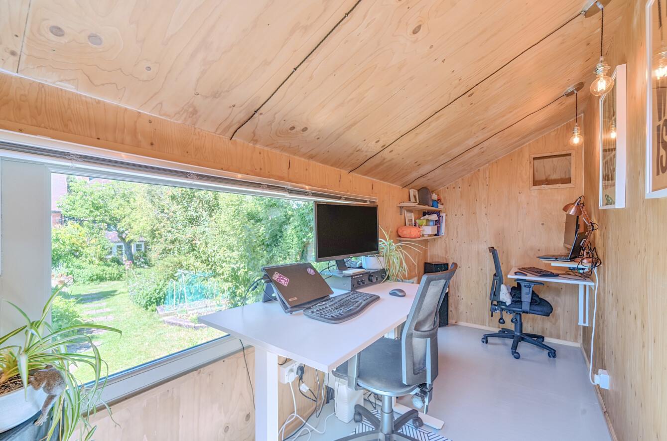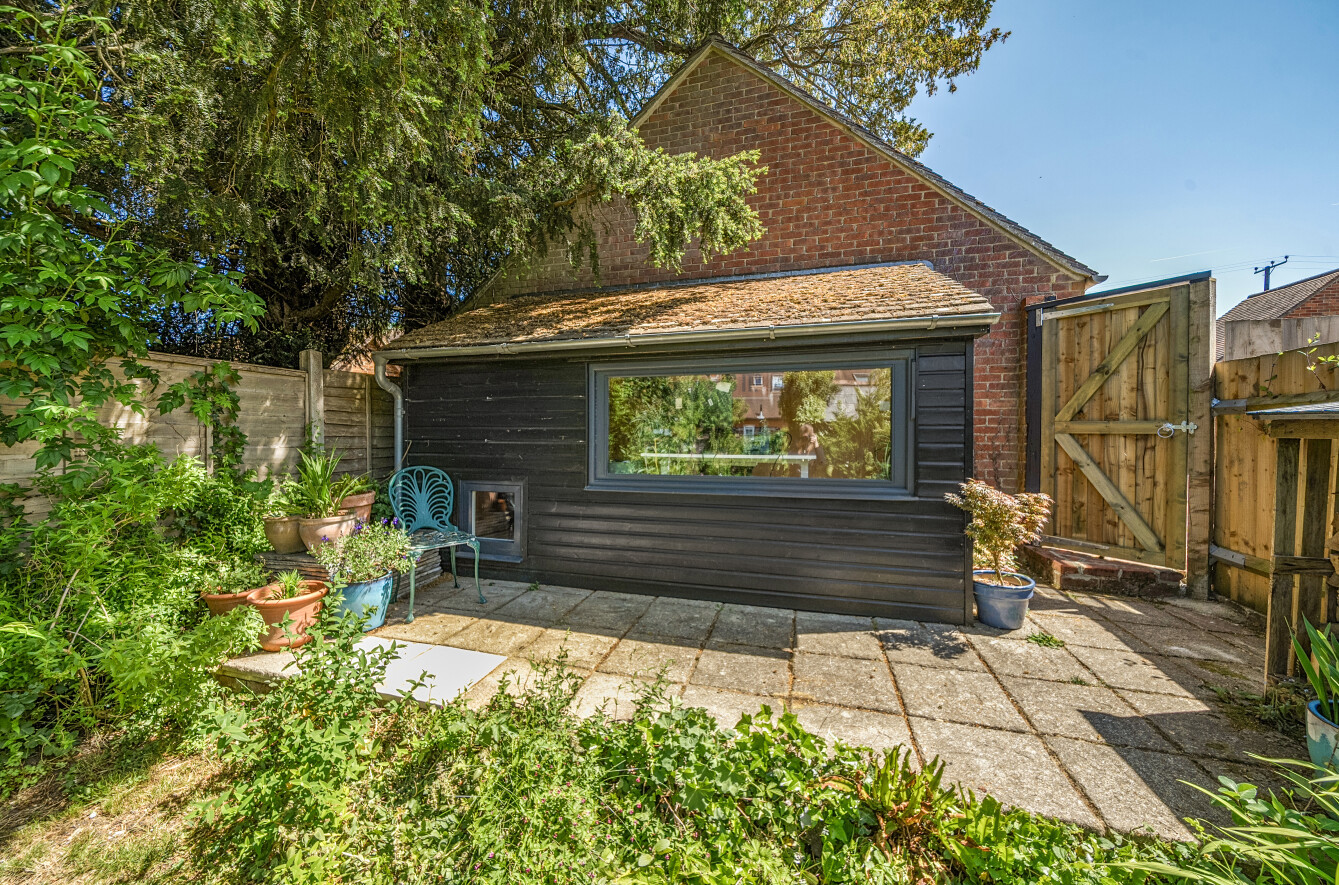 Outside, the property benefits from a private garden with a versatile outbuilding, currently set up as a garden office – perfect for working from home or creative pursuits. At the rear, a single garage provides secure parking or additional storage, with access via a private lane. The property enjoys an enviable location within walking distance of local amenities, a well-regarded primary school, and charming countryside walks.