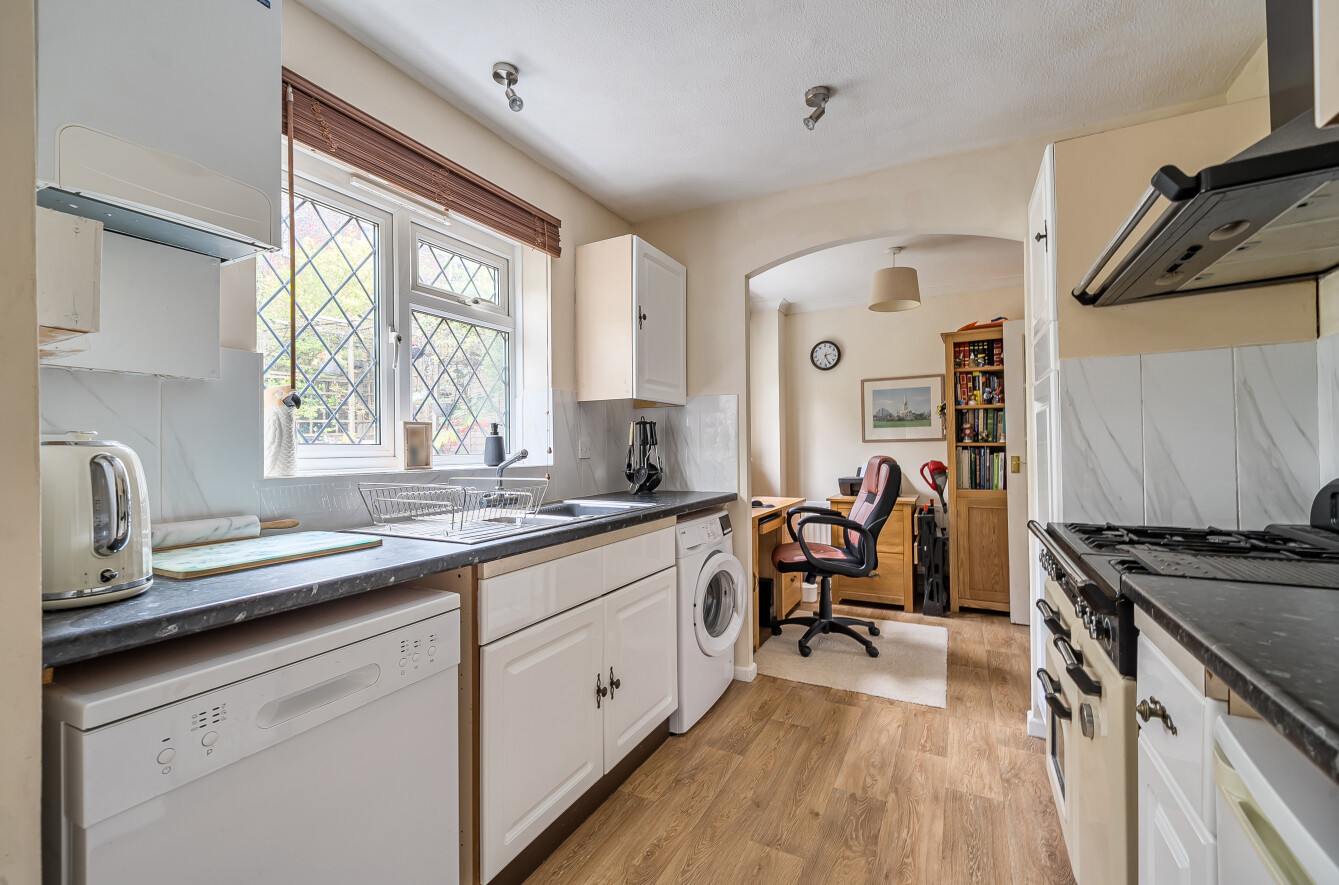 Outside, the rear garden faces east and enjoys sunshine for much of the day. A patio provides the perfect spot for outdoor dining, with a raised lawn bordered by mature shrubs. Local walks, a post office, Cobbs Farm Shop and transport links to Winchester are all close by, within Kings Worthy Primary catchment.