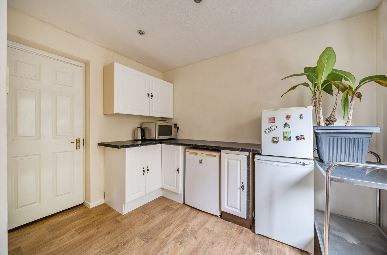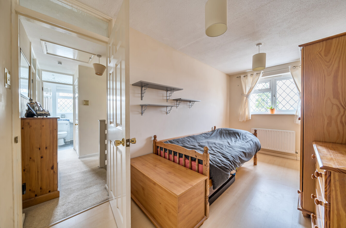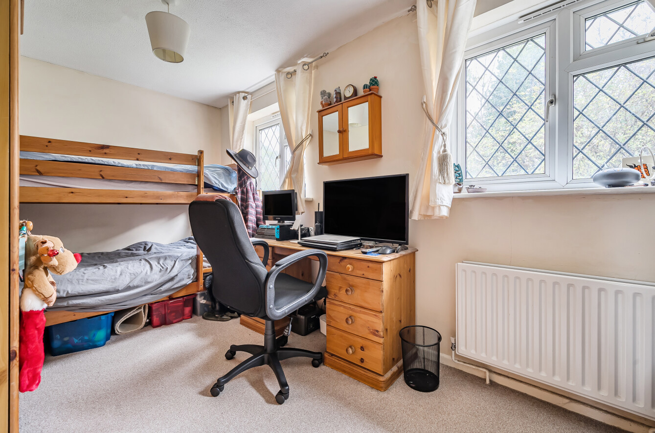 The ground floor provides a generous sitting room, a useful cloakroom, a study area, a practical galley-style kitchen and a comfortable family room. The kitchen sits at the centre of the home, linking the living spaces and creating a sociable flow throughout. Large windows ensure the rooms are bright and airy, and the décor is tasteful and neutral.