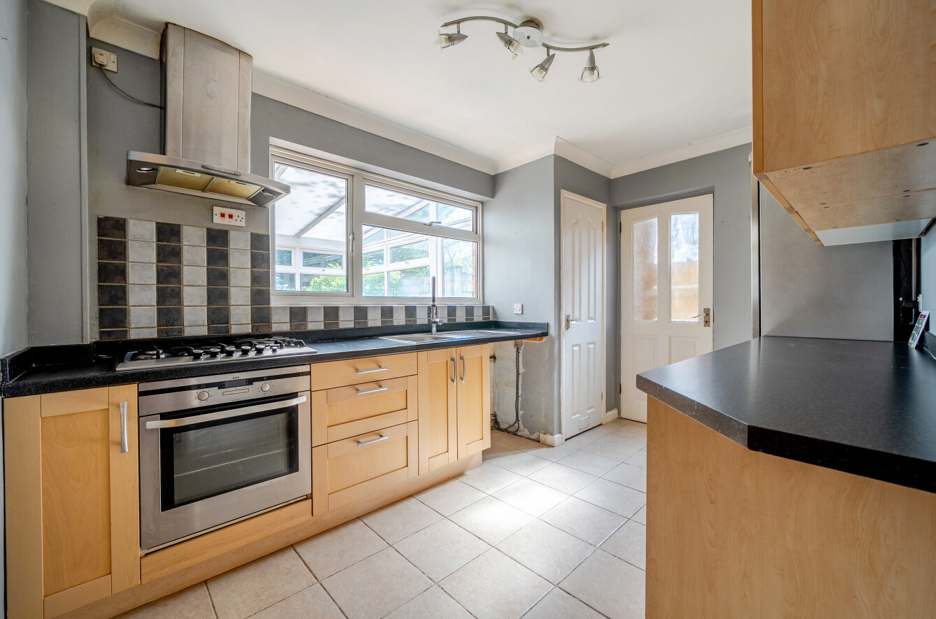 The second living room leads onto a good-sized, enclosed rear garden with patio and low-maintenance lawn, with raised beds, and a garage to the rear. A spacious conservatory offers further accommodation. The kitchen features hob, fridge-freezer, dishwasher and plentiful worktops and storage, including a pantry. It also gives access to a separate utility room.