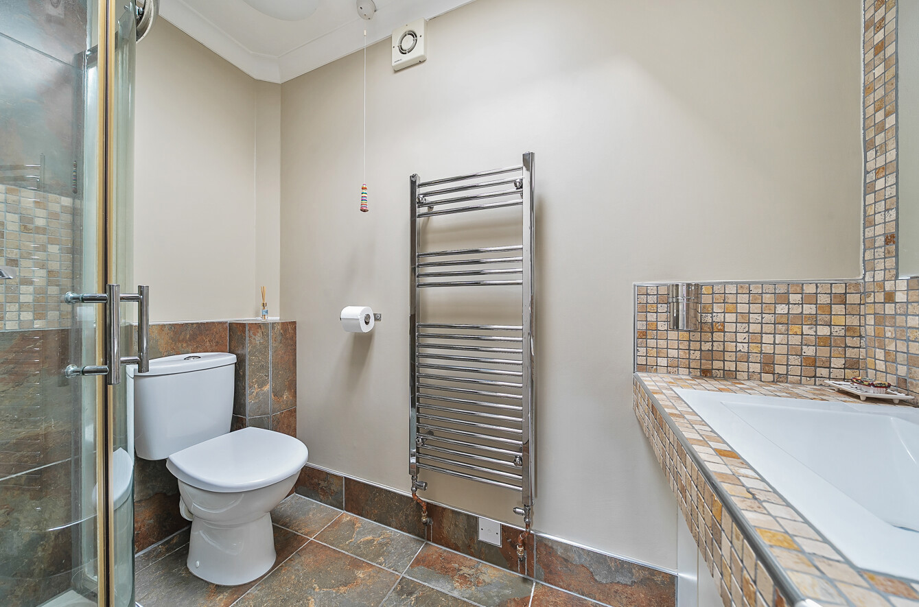 Upstairs, the spacious principal bedroom features generous built-in storage and a contemporary en-suite bathroom. The property has been recently redecorated throughout and benefits from a newly installed heating system, making it ready for immediate occupation.