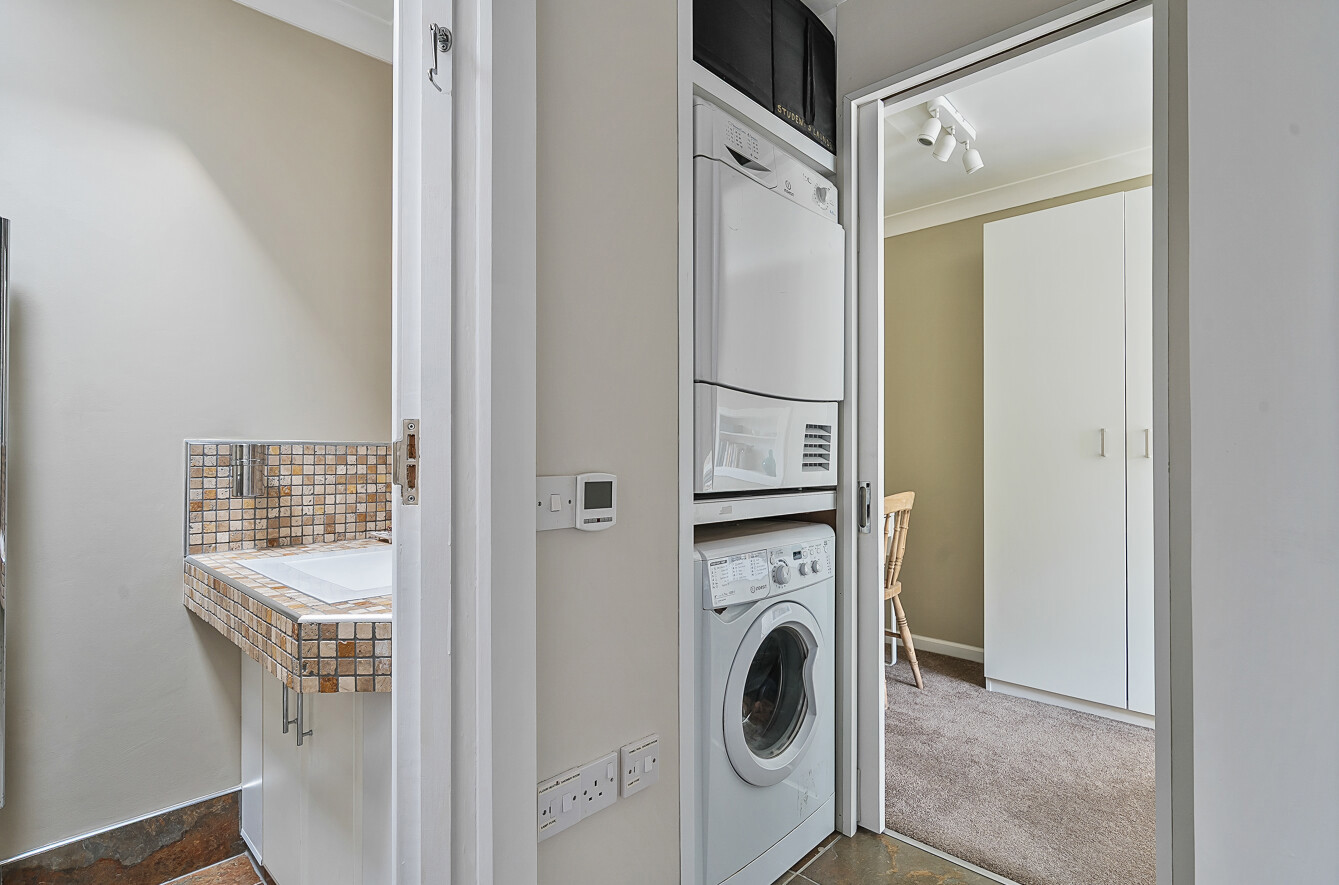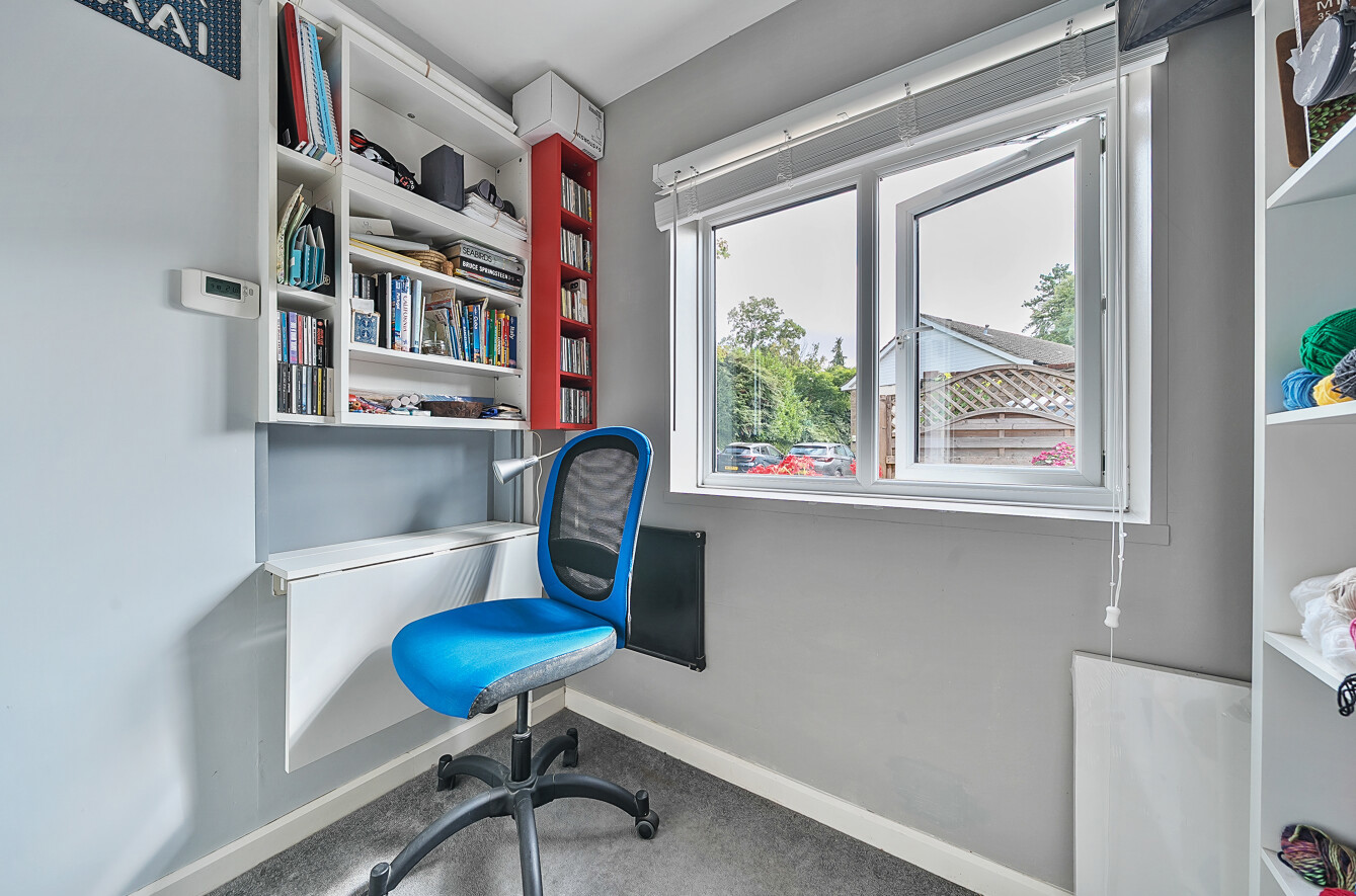 Approached via a private driveway and a charming patio garden to the front, the property opens into a welcoming entrance hallway leading to a well-proportioned living room and a bright kitchen/breakfast room. To the rear, you’ll find a study, utility area, and a double bedroom complemented by a modern shower room.