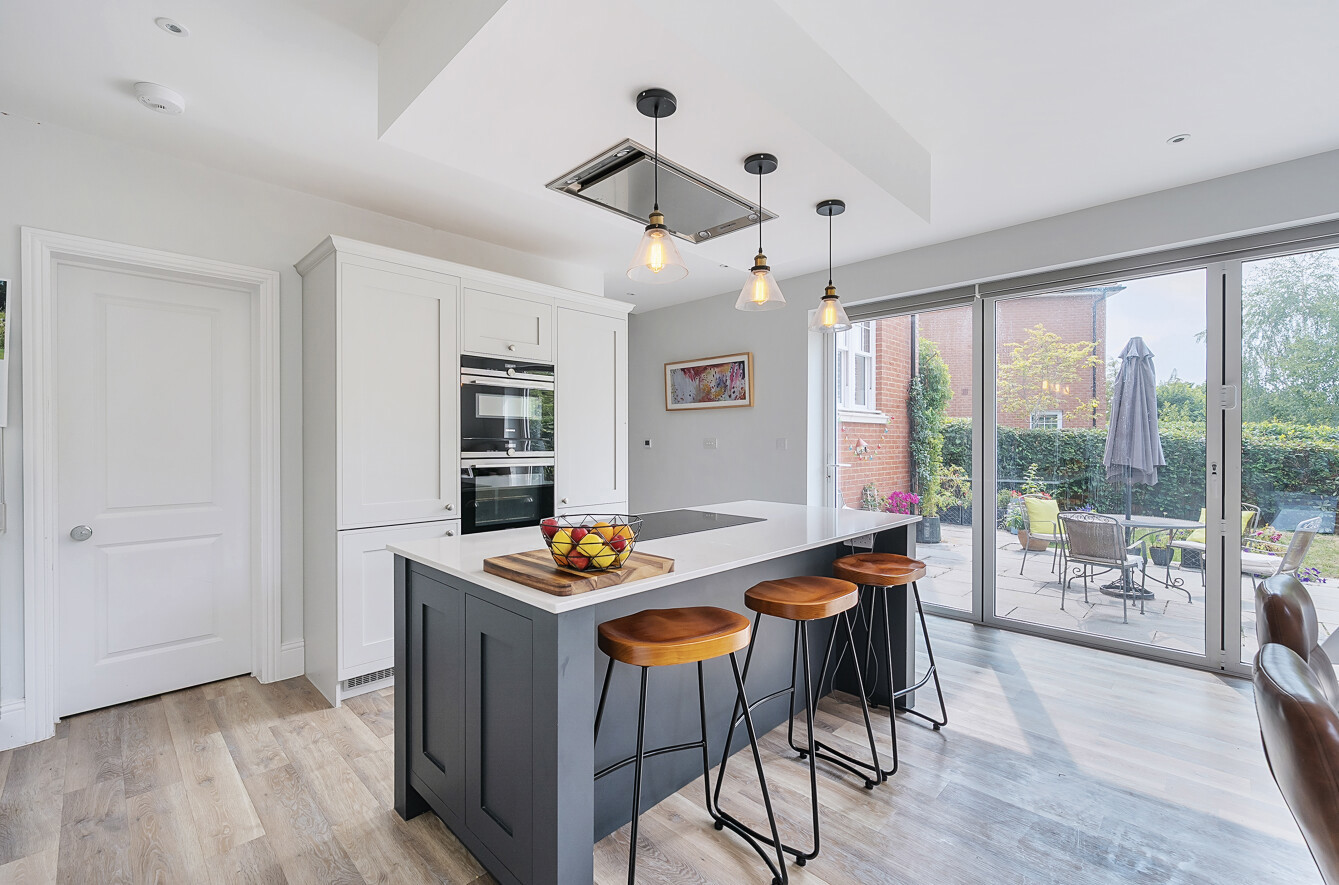 This beautifully crafted residence has been finished to an impeccable standard, offering generous and versatile living spaces. The ground floor features an inviting reception hallway, cloakroom, private study, and a spacious living room centred around a charming fireplace with wood-burning stove. At the heart of the home is the stunning shaker-style kitchen and dining area, complete with a central island, separate utility room, and bi-fold doors that open seamlessly onto the landscaped rear garden. The entire ground floor also benefits from underfloor heating.