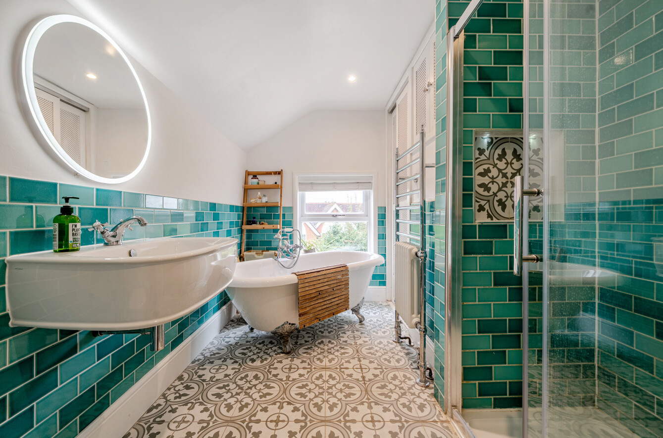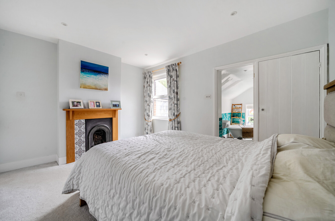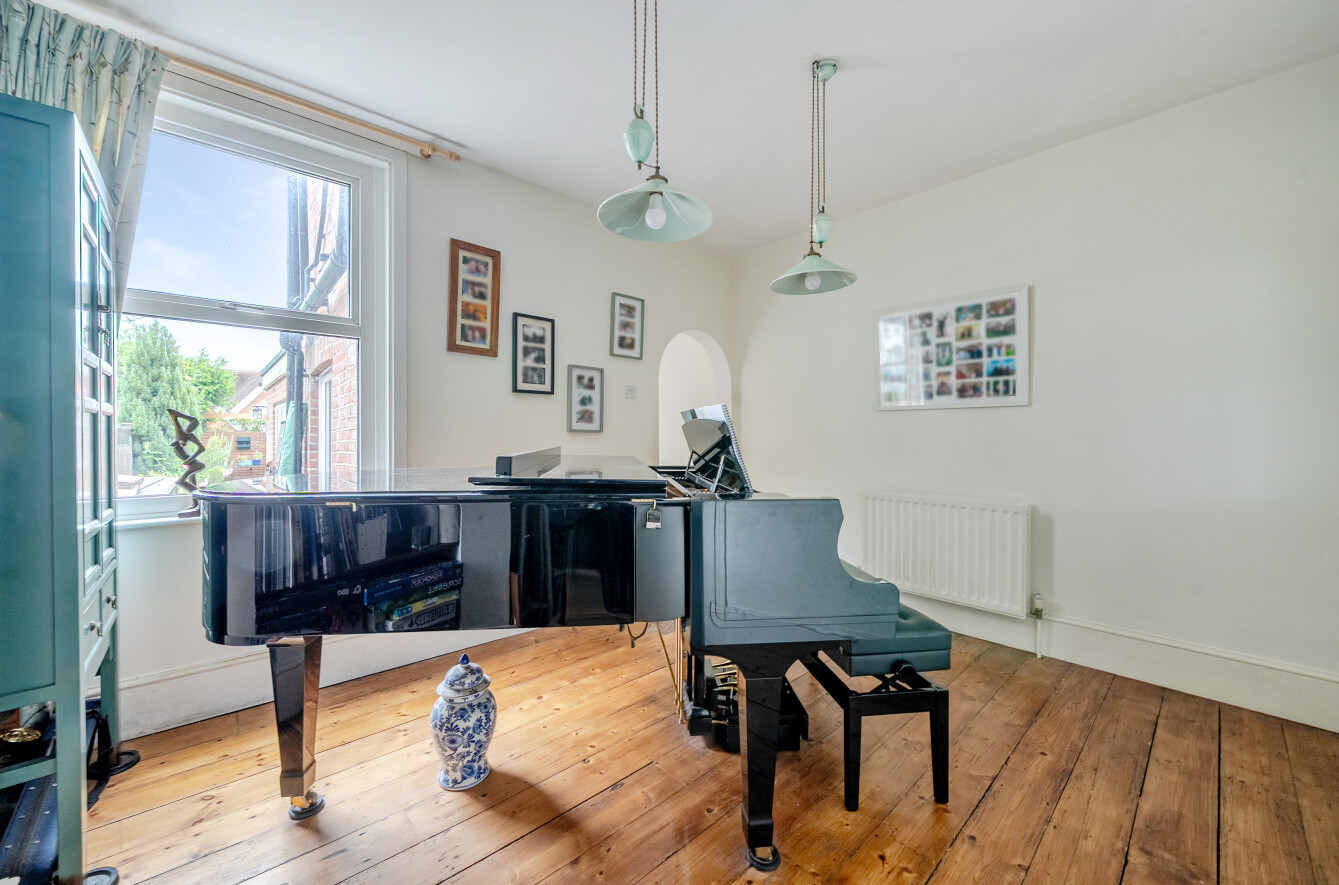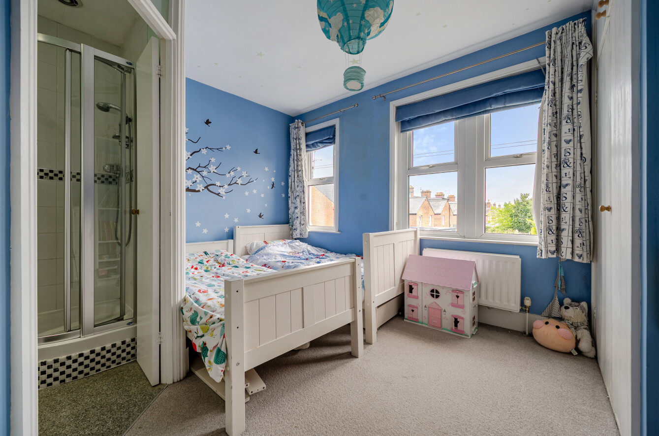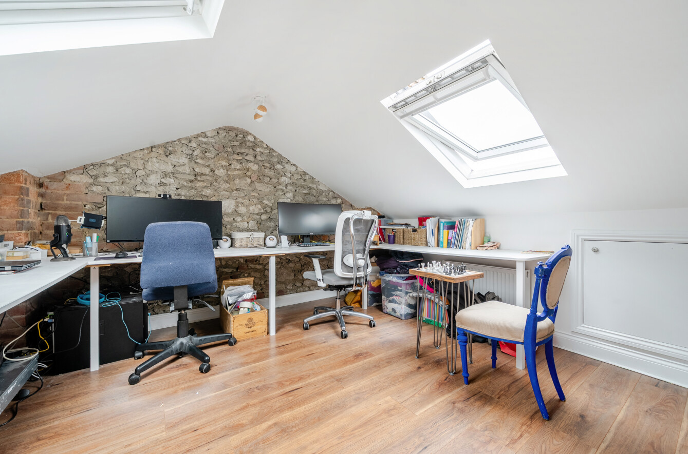 The first-floor hosts two further bedrooms, including a generous double and a small double, served by a beautifully appointed family bathroom featuring both a roll-top bath, walk in shower and underfloor heating. A converted loft provides additional space, perfect as a study or hobby room. The home retains much of its Victorian charm, with high ceilings, fireplaces, and refurbished original wooden flooring, while benefitting from modern comforts.