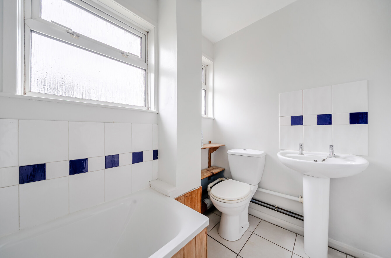 The spacious sitting/dining room enjoys a rear aspect and access to the garden, creating an inviting and versatile living area. Neutral décor and contemporary flooring provide a blank canvas ready for a new owner’s style. The kitchen, positioned to the front of the house, offers functional workspace with potential for modernisation or reconfiguration.