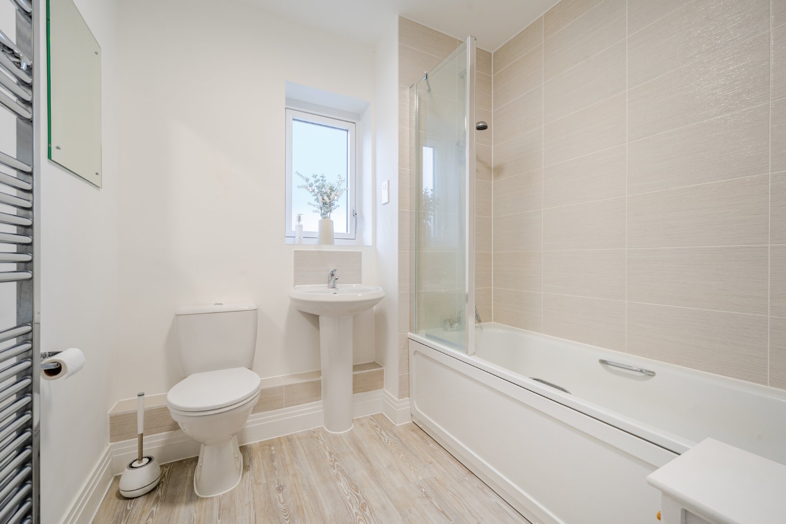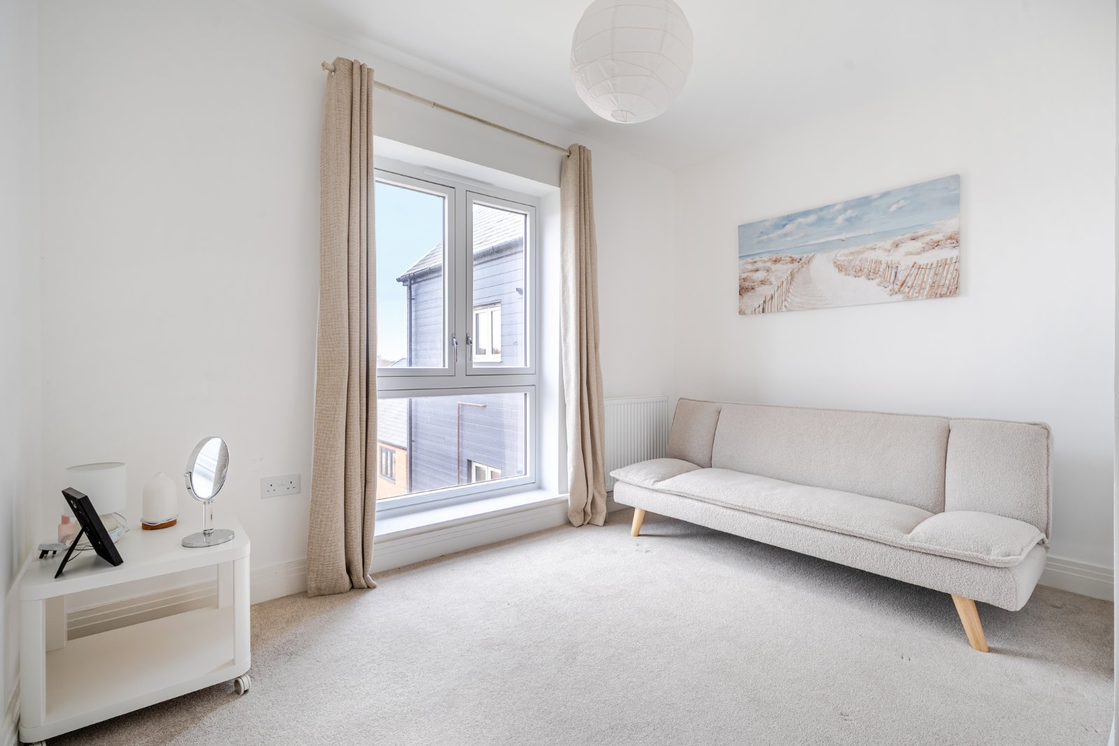 The apartment features two generously sized double bedrooms, providing flexible accommodation for families, couples, or those needing a home office. The modern family bathroom has been stylishly finished with contemporary fixtures and fittings.