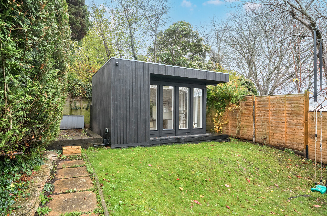 The ground floor features a welcoming sitting room and a well-arranged kitchen, while upstairs offers three bedrooms and a family bathroom. One of the property’s most striking features is its surprisingly large and mature rear garden, ideal for families, entertaining, or those seeking outdoor space and privacy. Within the garden sits a versatile garden studio/home office, perfect for remote working, creative pursuits, or quiet relaxation away from the main house.