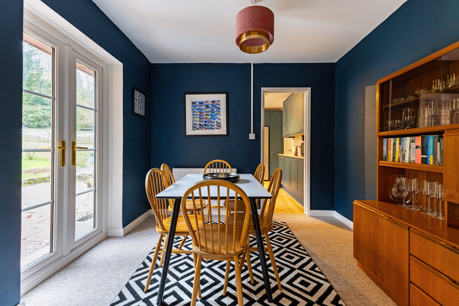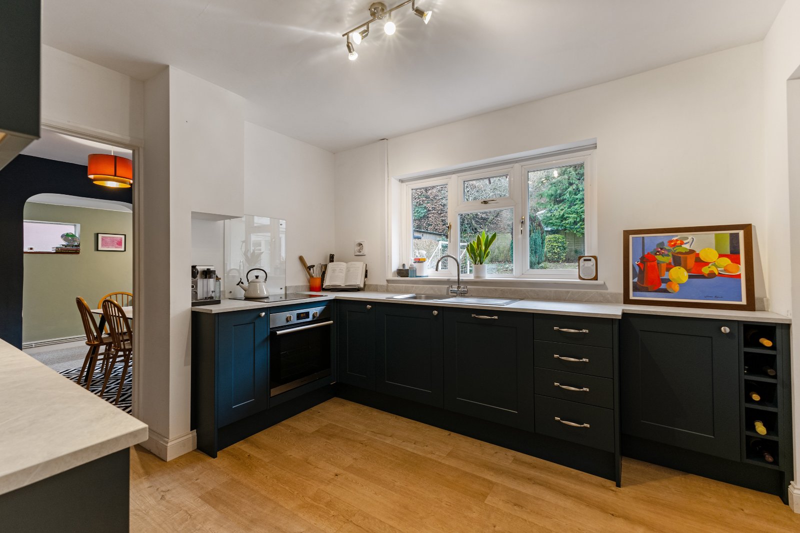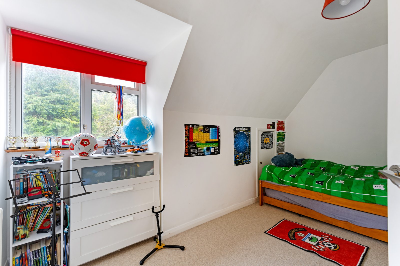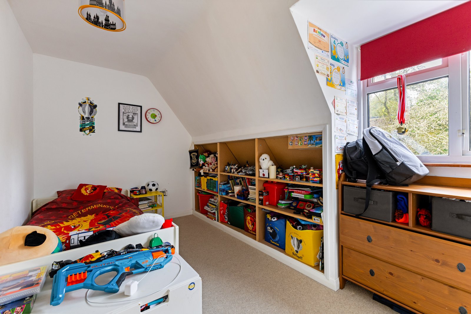 At the heart of the home sits a modern kitchen with quality appliances, excellent storage and an adjoining breakfast room that looks out onto the south-facing garden — an ideal spot for morning coffee or family mealtimes. A versatile family room offers extra space that works perfectly as a playroom, snug or home office, while the spacious sunroom, currently used as a gym and garden room, adds even more flexibility. Additional storage and a convenient downstairs cloakroom complete the ground floor. Upstairs, the home continues to feel bright and airy, with four comfortable bedrooms. The primary bedroom enjoys calming views of the front garden and mature trees, complemented by tasteful décor and ample built-in storage. The remaining bedrooms are generously sized and share a stylish family bathroom featuring both a bath and separate shower.