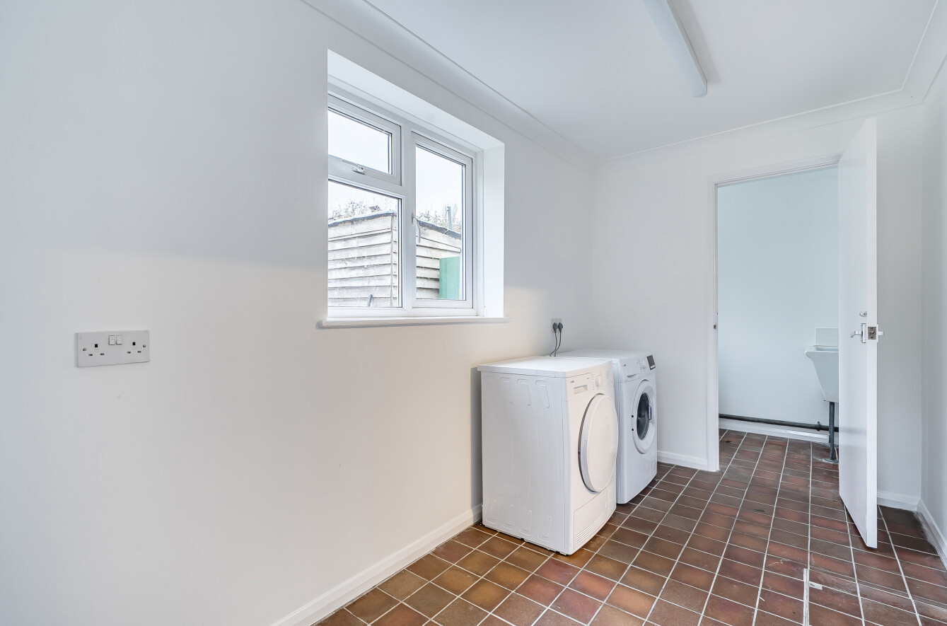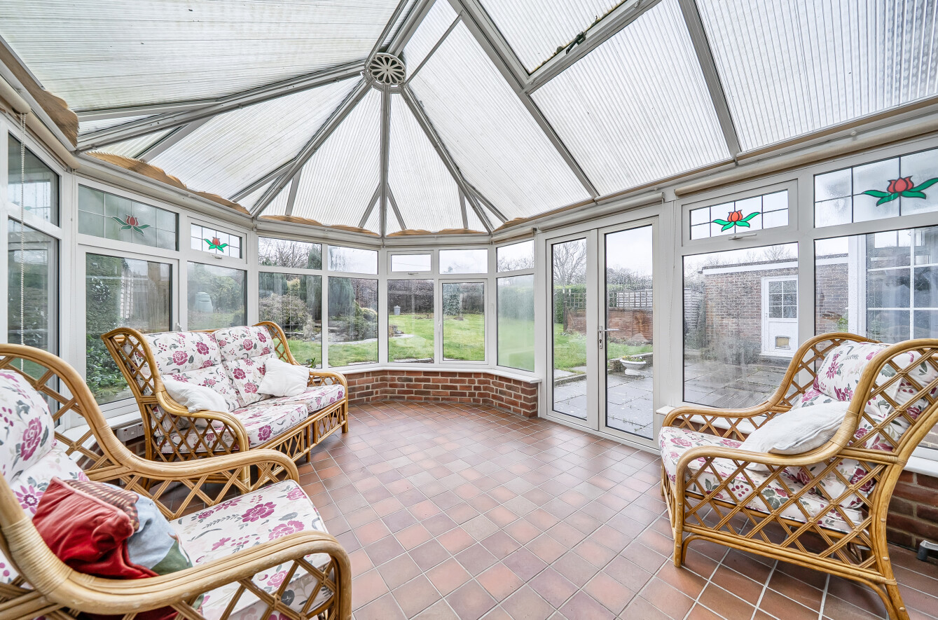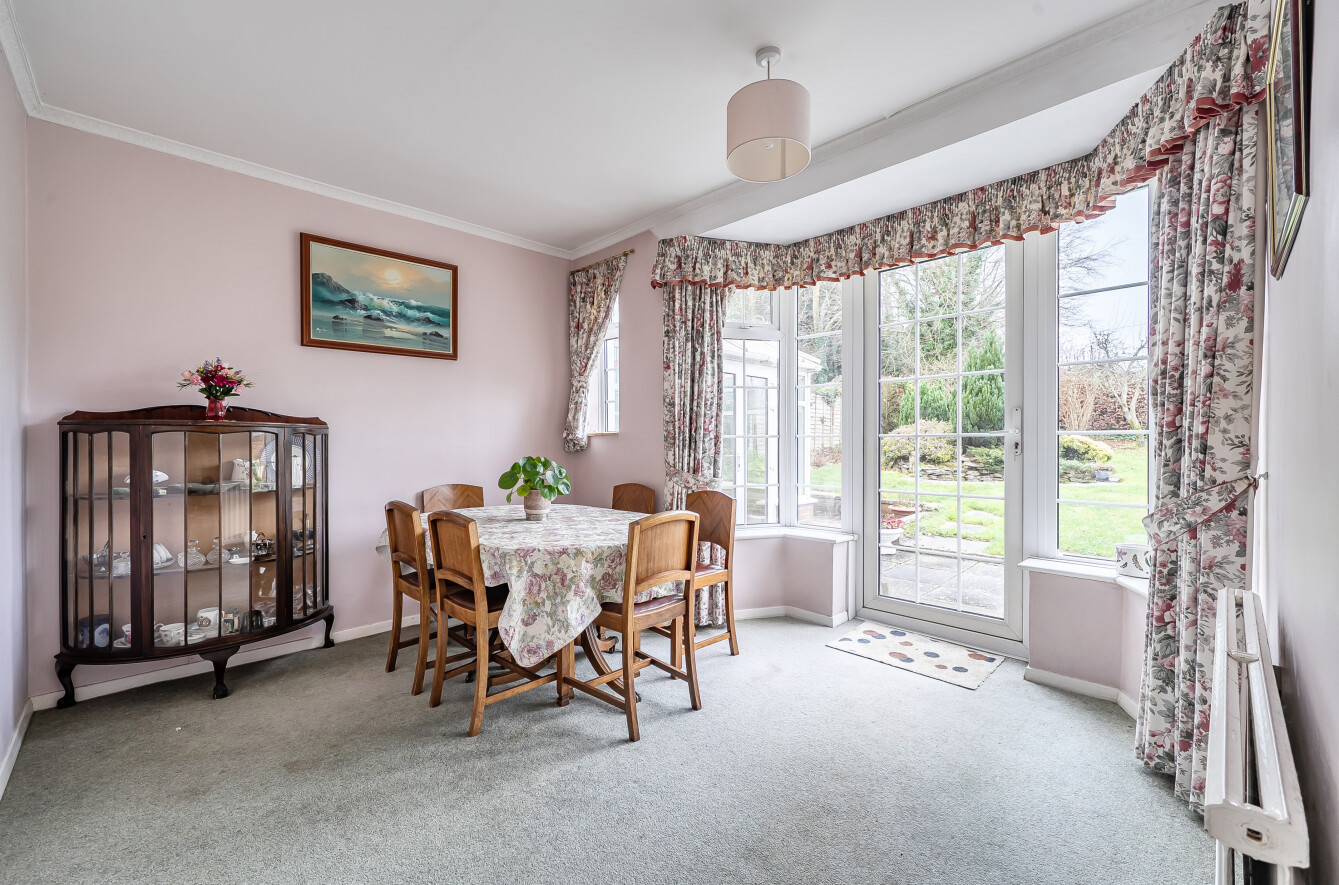 On arrival, a spacious and welcoming entrance hallway sets the tone, leading to a guest cloakroom and a generous triple-aspect sitting room filled with natural light. A separate dining room provides an excellent space for entertaining, while the sitting room opens directly into the conservatory, creating a seamless connection with the garden. The fitted kitchen is well proportioned and is complemented by an adjoining utility room, offering practical day-to-day convenience.