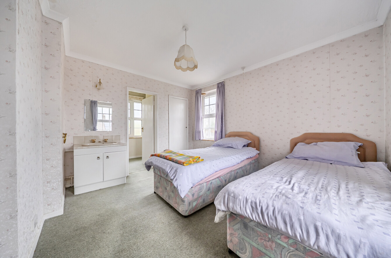 The first floor comprises three well-sized double bedrooms, with bedroom three benefiting from a useful en-suite shower room. The principal bedroom offers excellent proportions, while a modern family bathroom serves the remaining accommodation.