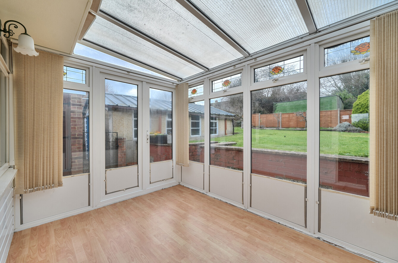 To the rear, the bungalow enjoys a good-sized, well-maintained garden, ideal for relaxing, gardening, or entertaining in the warmer months. To the front, there is convenient off-road parking, complemented by a detached garage providing additional storage or secure parking.
