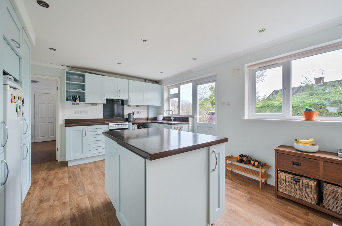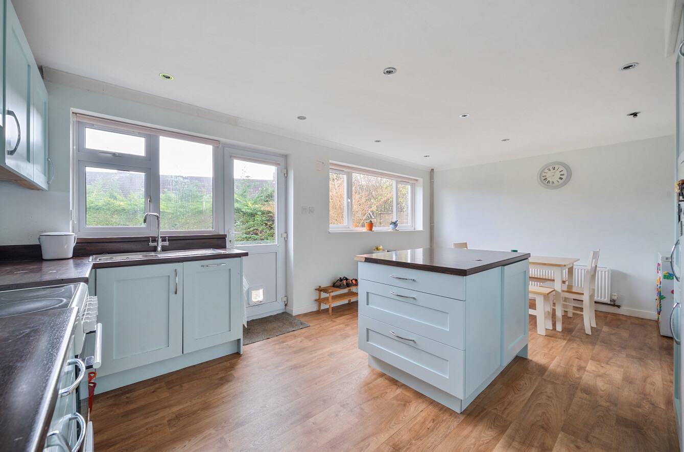 The front door opens into a spacious entrance hall with access to the sitting room, open-plan kitchen/breakfast room, a guest cloakroom and a versatile study/office or playroom. The sitting room enjoys a large front-facing aspect, allowing an abundance of natural light to fill the space. To the rear, the impressive open-plan kitchen/breakfast room offers excellent views over the garden, combined with a good range of wall and base units with a central island and provides an ideal setting for family living and entertaining.