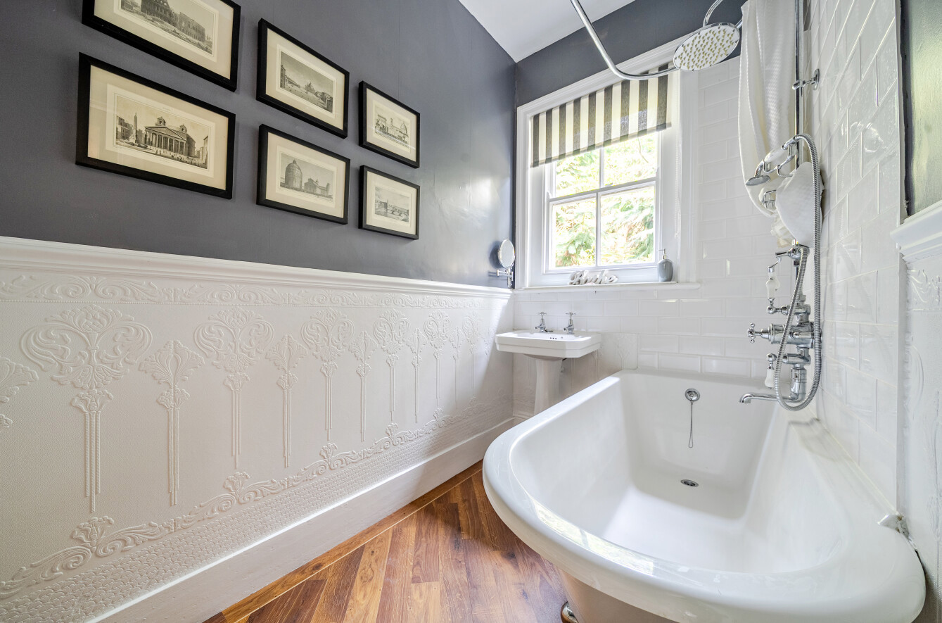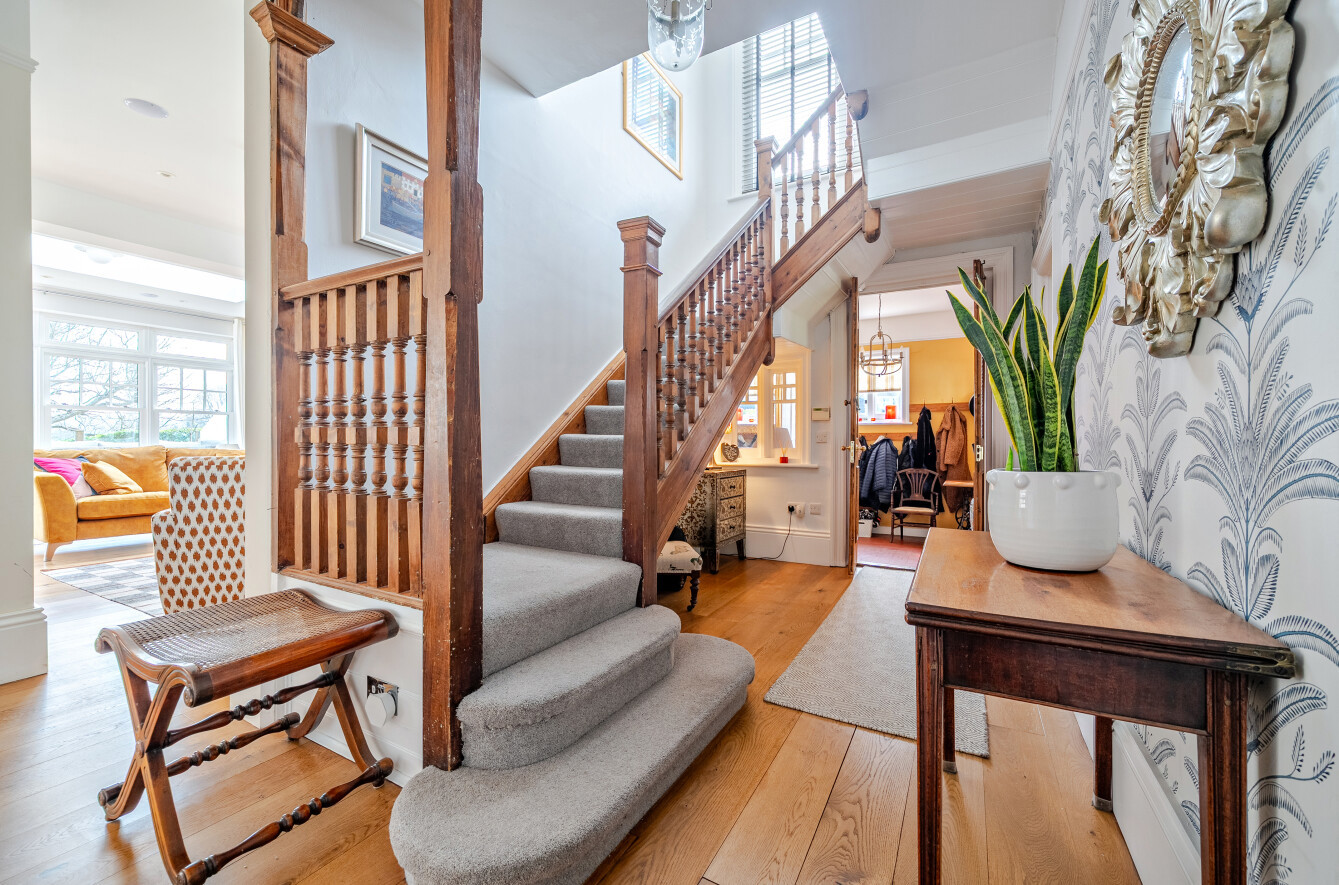 Upstairs, the first floor provides four generous double bedrooms, one with an en- suite, alongside a well-appointed family bathroom. The second floor adds further versatility, with a large double bedroom, adjoining bathroom, study, and an additional shower room.