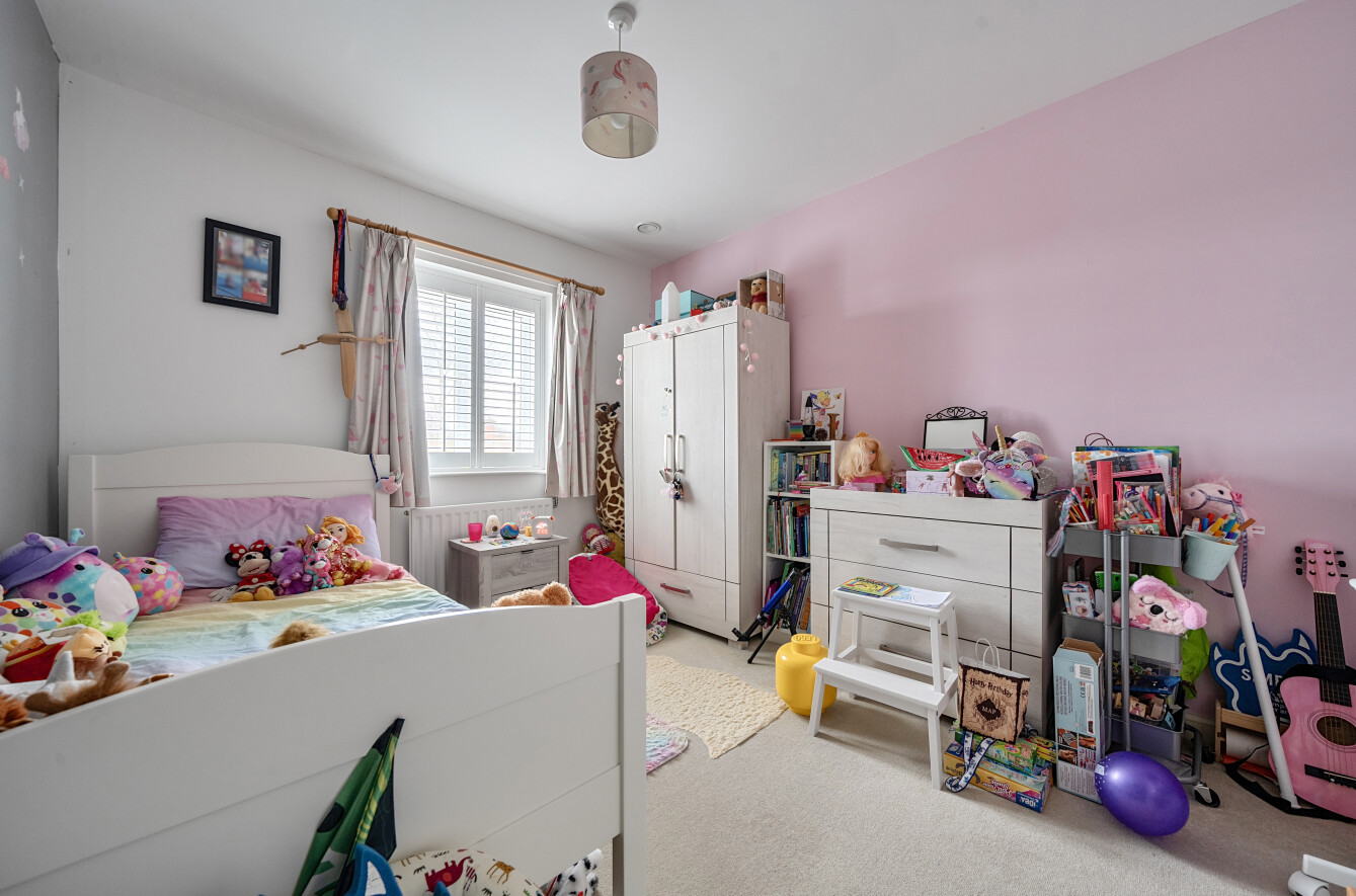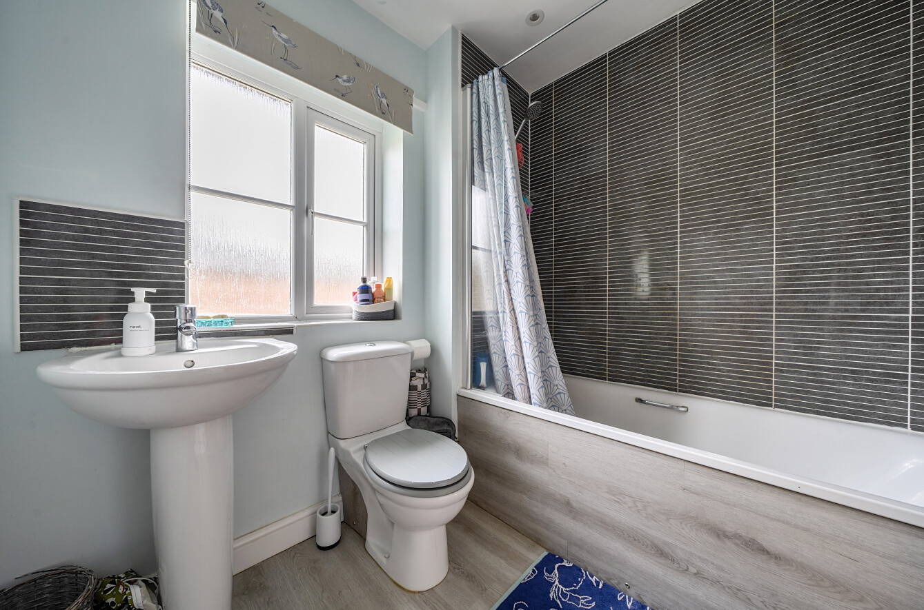 Upstairs, the first floor offers three bedrooms arranged around a central landing, creating a practical and family-friendly layout. The principal bedroom and second bedroom are both comfortable doubles, while the third bedroom works well as a child’s room, guest room, or home study. A family bathroom serves all bedrooms and completes the upper floor.