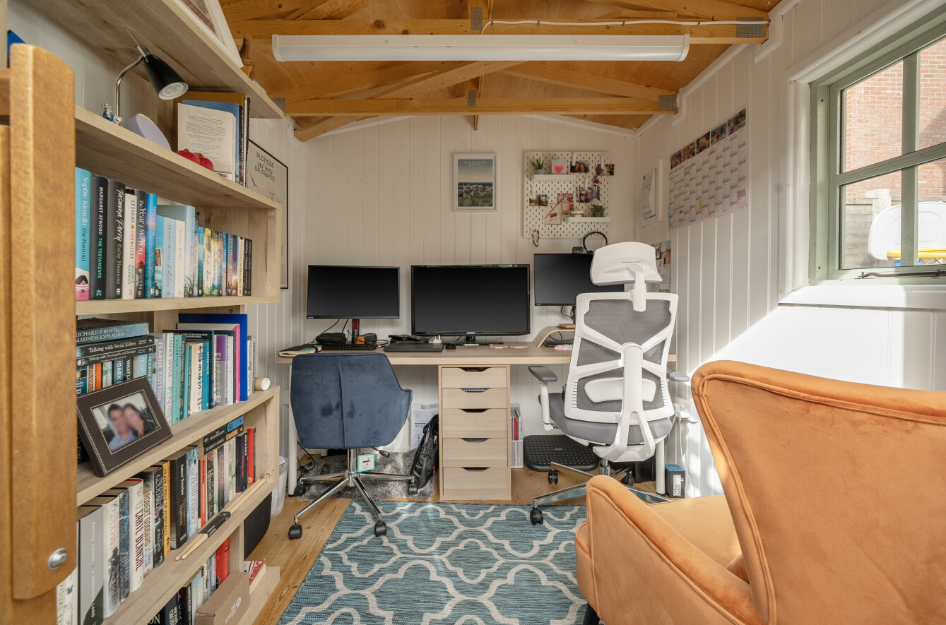 A further advantage is the separate outbuilding, currently arranged as a home office, which offers excellent flexibility for remote working, hobbies, or additional workspace.