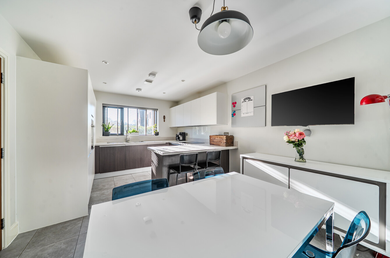 Upstairs, the property offers three generously sized double bedrooms. The principal bedroom benefits from a contemporary en-suite shower room, while the remaining bedrooms are served by a stylish and well-appointed family bathroom.