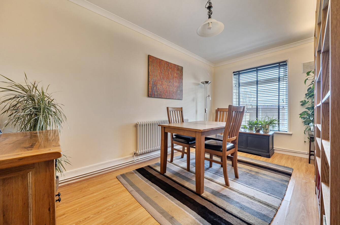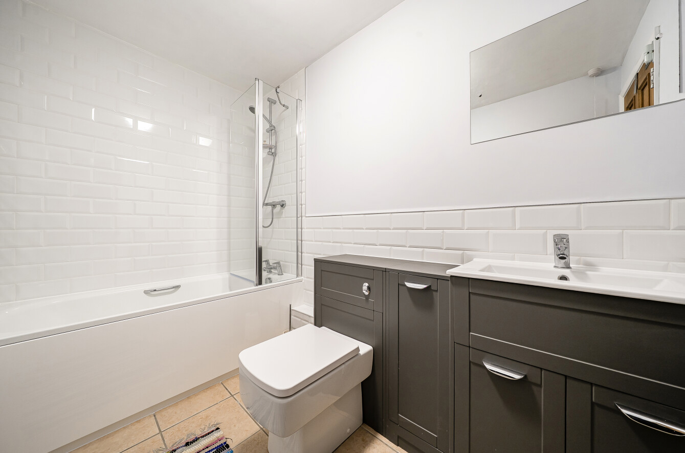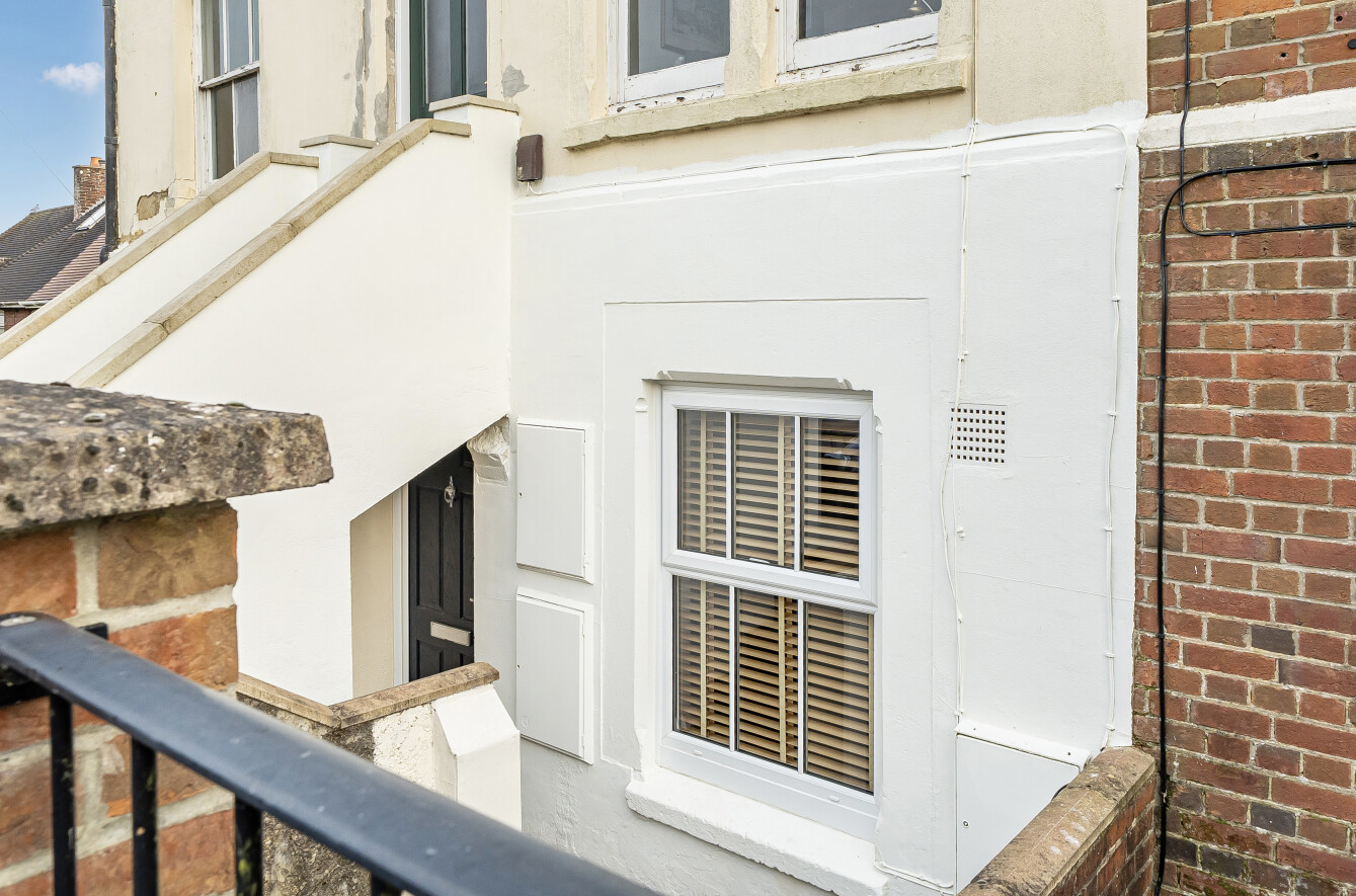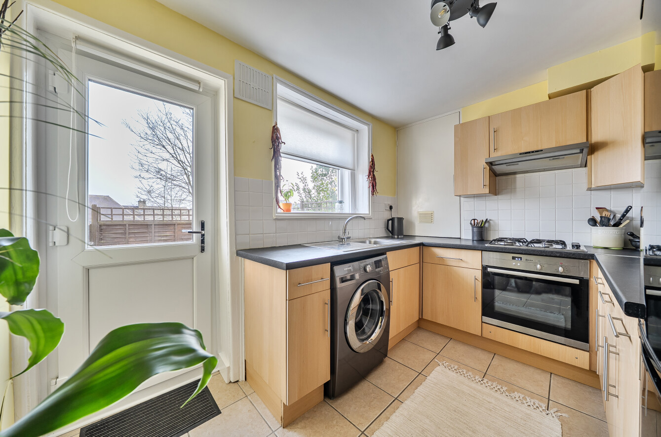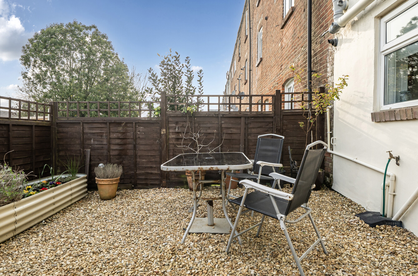 The stylish interior benefits from a spacious sitting room with an attractive open fireplace, creating a warm and inviting living space, while the two well-proportioned double bedrooms provide comfortable accommodation. The newly refurbished bathroom has been finished to a high standard, and the rear-aspect kitchen overlooks the low-maintenance garden, perfectly complementing the apartment’s tranquil setting.