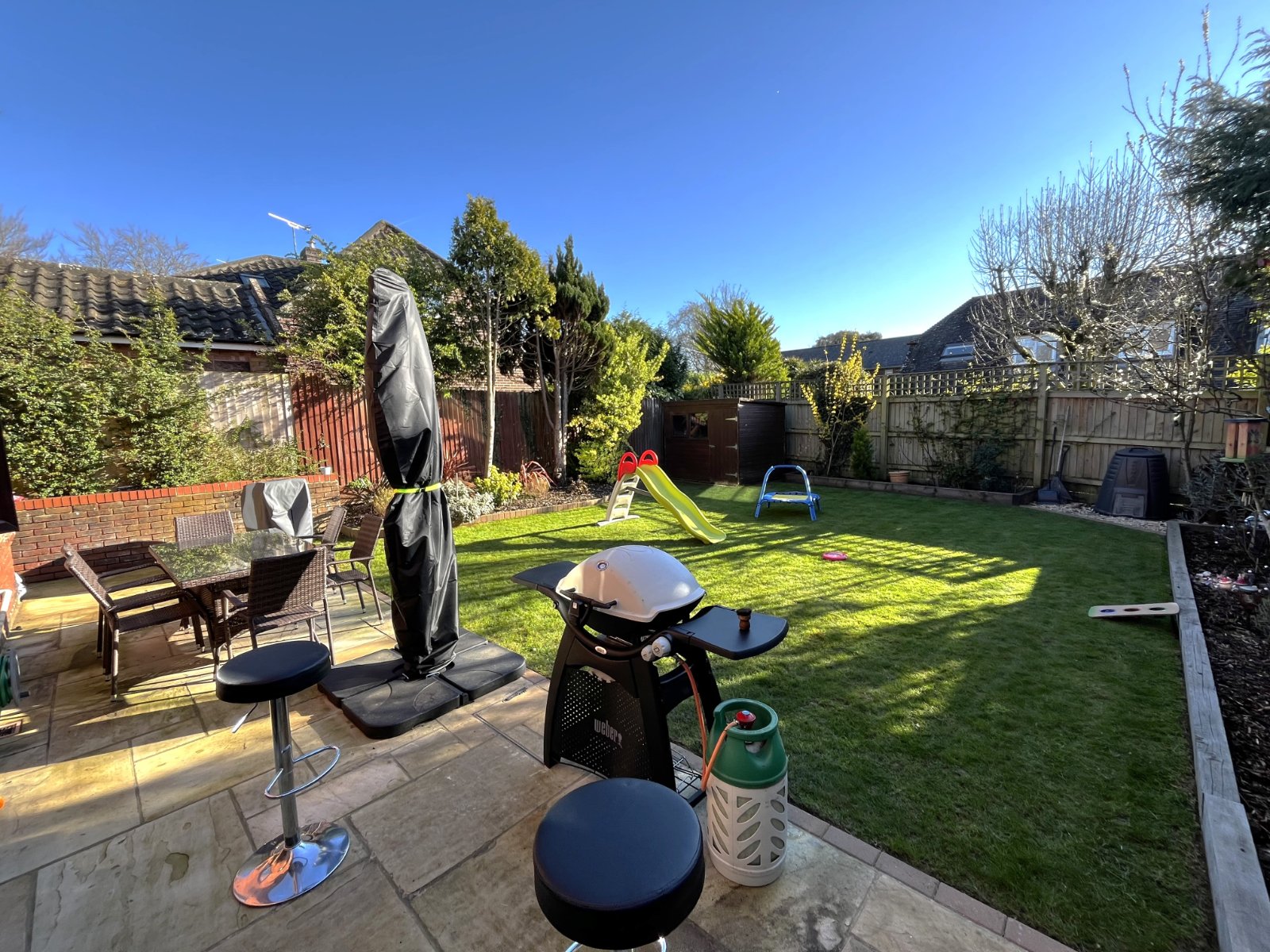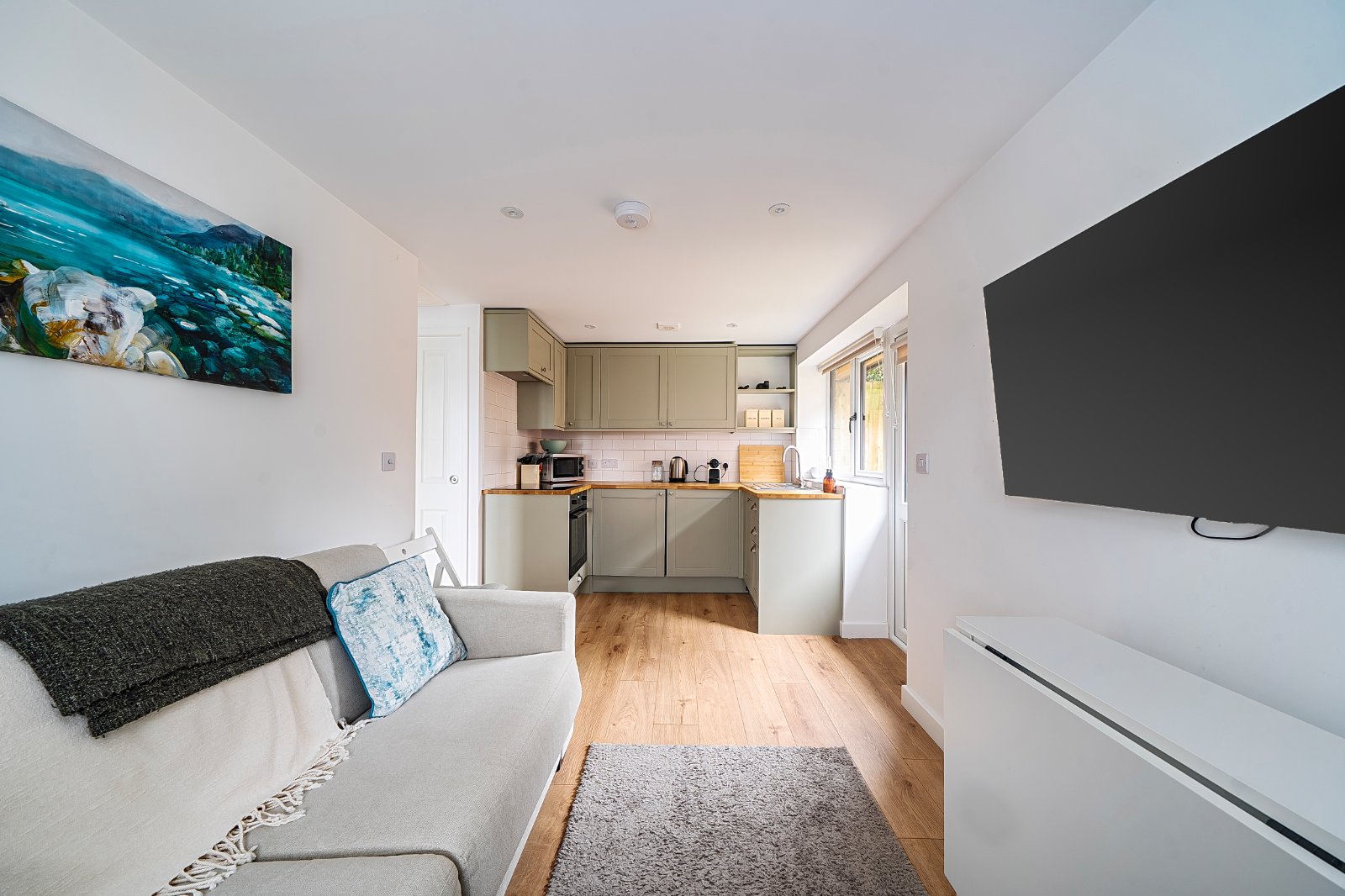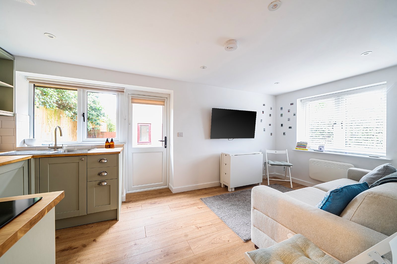Externally, the private rear garden is mainly laid to lawn and bordered by mature planting beds, offering a peaceful outdoor space. The former garage has been thoughtfully converted into a versatile annexe/studio, ideal for guests, home working or additional living space, while the frontage still provides ample off-road parking.