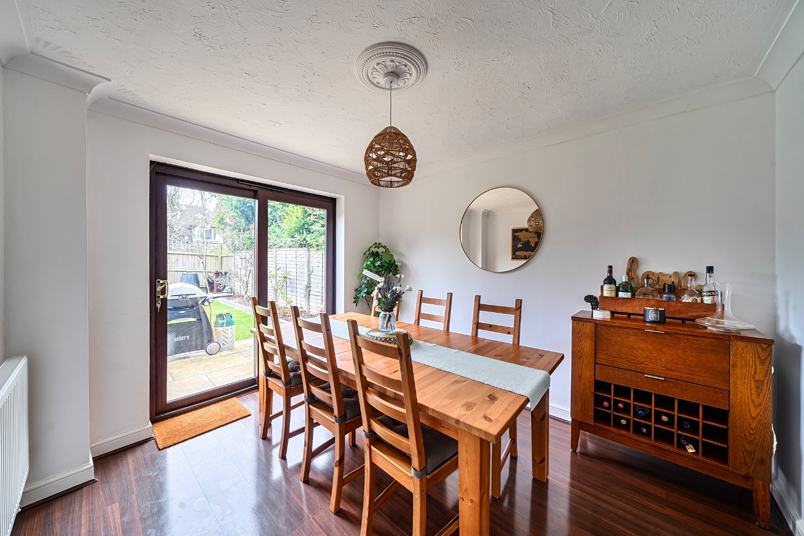 The front door opens into a welcoming entrance hall, providing access to the majority of the ground floor accommodation. To the right is a spacious sitting room featuring a bay window and a stylish fireplace, creating an attractive focal point. This leads seamlessly into the dining room, an ideal space for entertaining, enhanced by an abundance of natural light from sliding glass doors opening onto the rear garden.