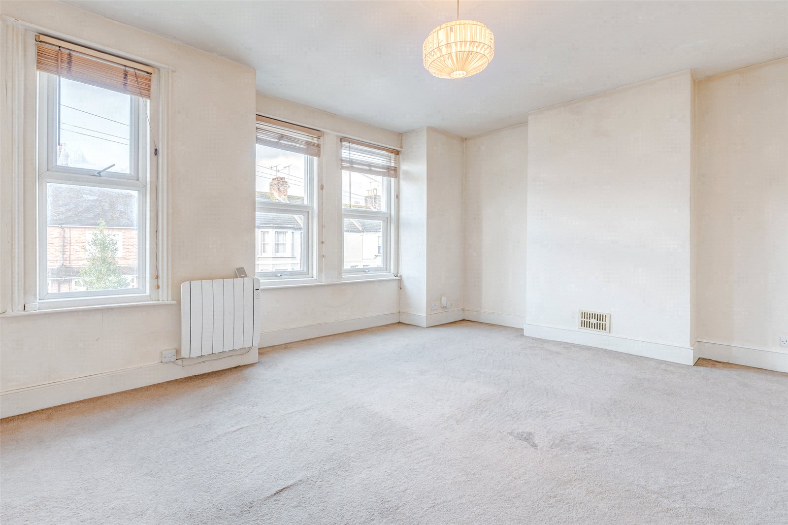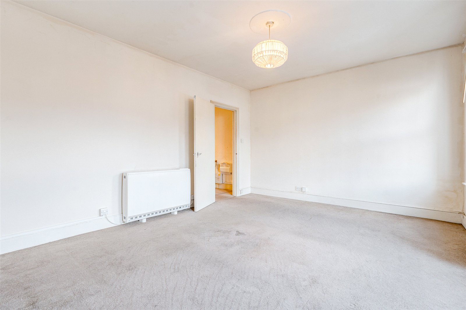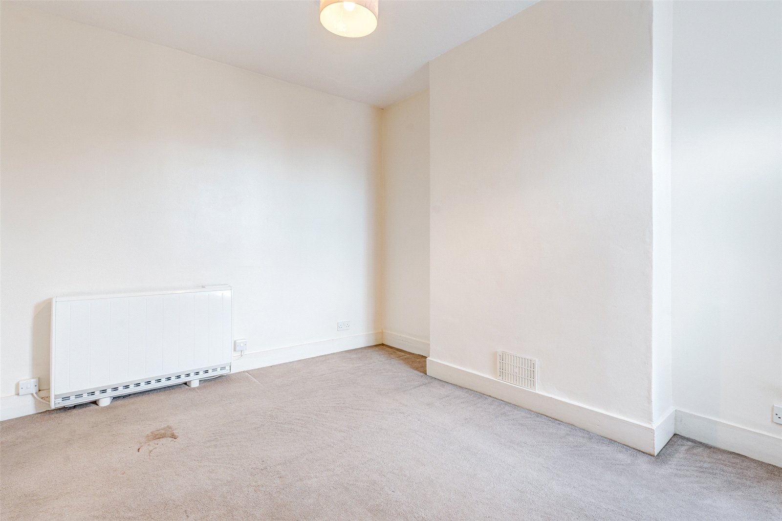 The bedroom is well-proportioned, offering plenty of room for a double bed, wardrobe, and drawers.
