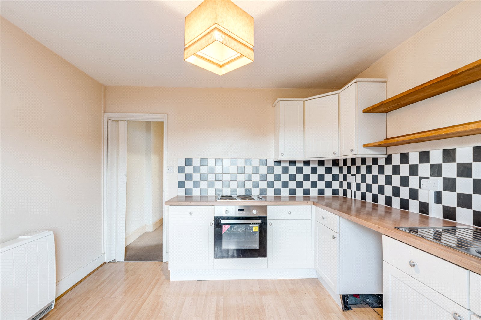 The generously sized fitted kitchen is equipped with a range of wall and base units, providing ample worktop space and integrated appliances. There is also plenty of room to accommodate additional furniture, such as a dining table and chairs.