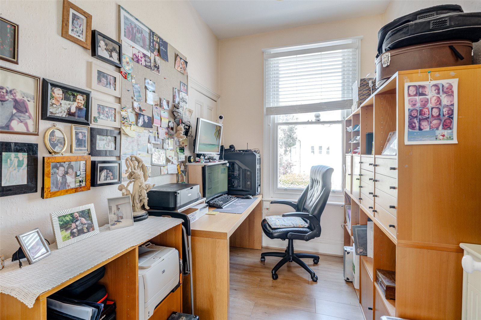 Also on the first floor is a versatile room currently used as a dining room, which can alternatively serve as a third double bedroom or a second reception space. It includes built-in storage, decorative paneling, and retains period charm, with enough room for a double bed or alternative furnishings.