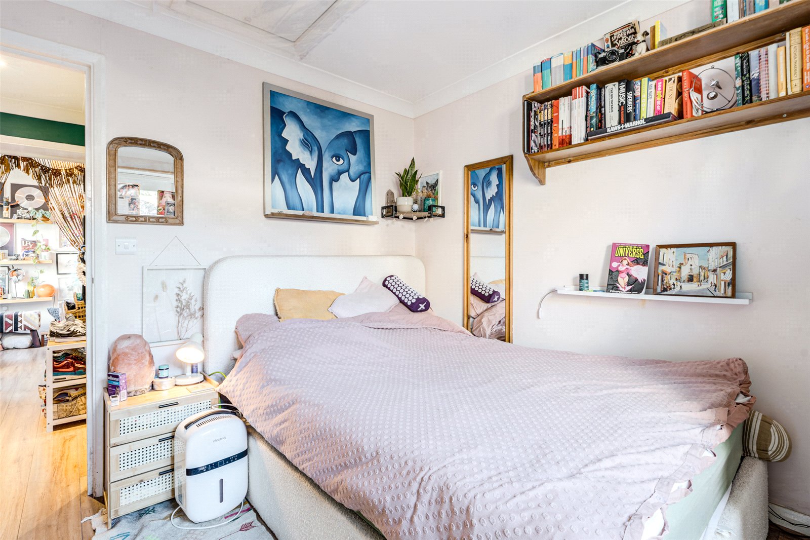 The double bedroom, also filled with natural light, provides ample space for bedroom furniture such as a double bed, wardrobe, and drawers. From the bedroom, you have direct access to the private garden—perfect for outdoor relaxation.