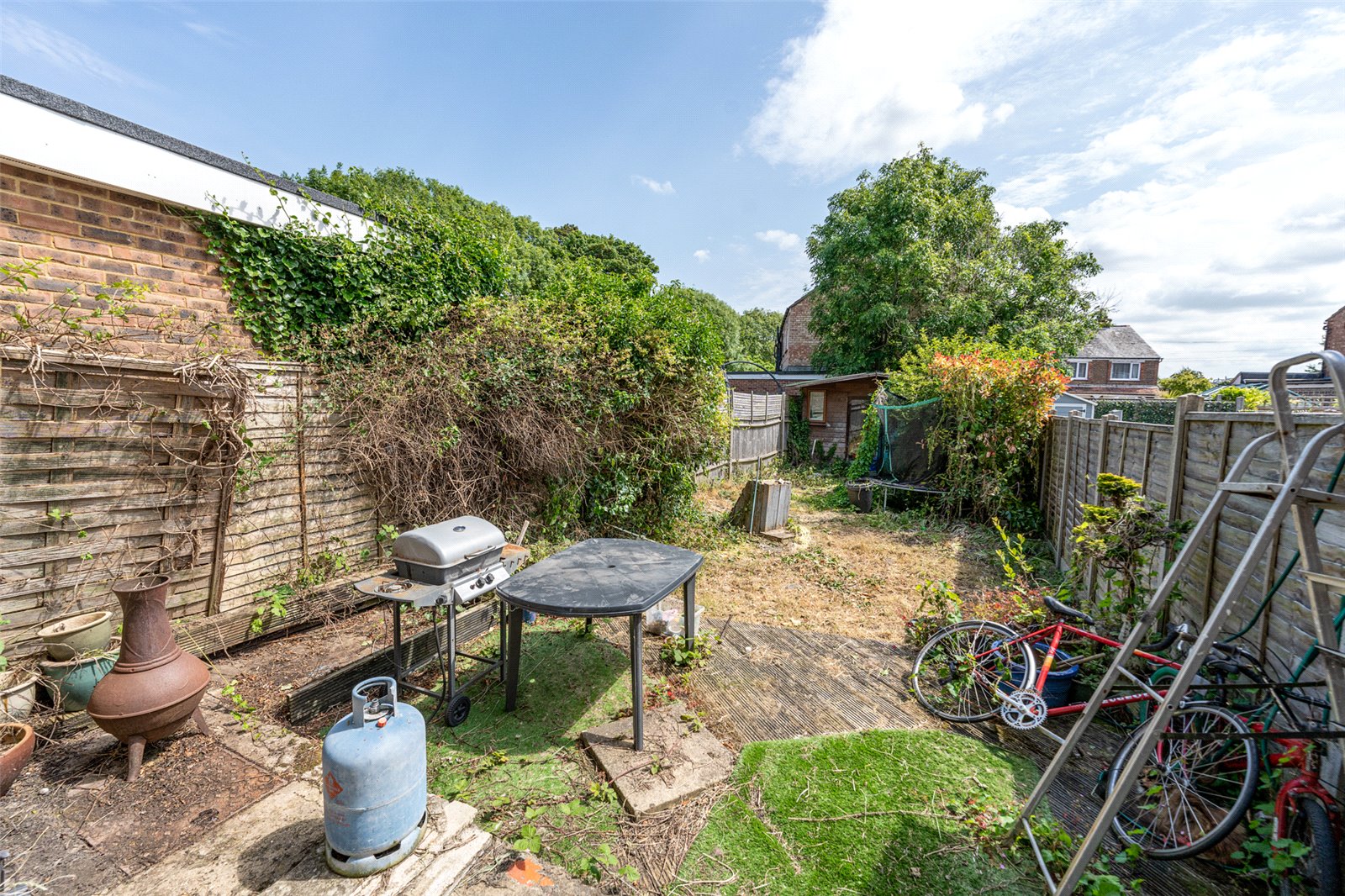 Double-glazed doors from the dining area open out into the garden, where you will find a charming patio area perfect for outdoor dining and relaxation. At the far end of the garden, a summer house offers additional versatility, serving as a peaceful retreat or extra storage space.