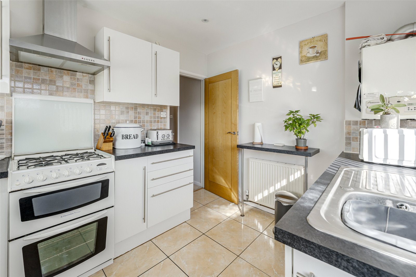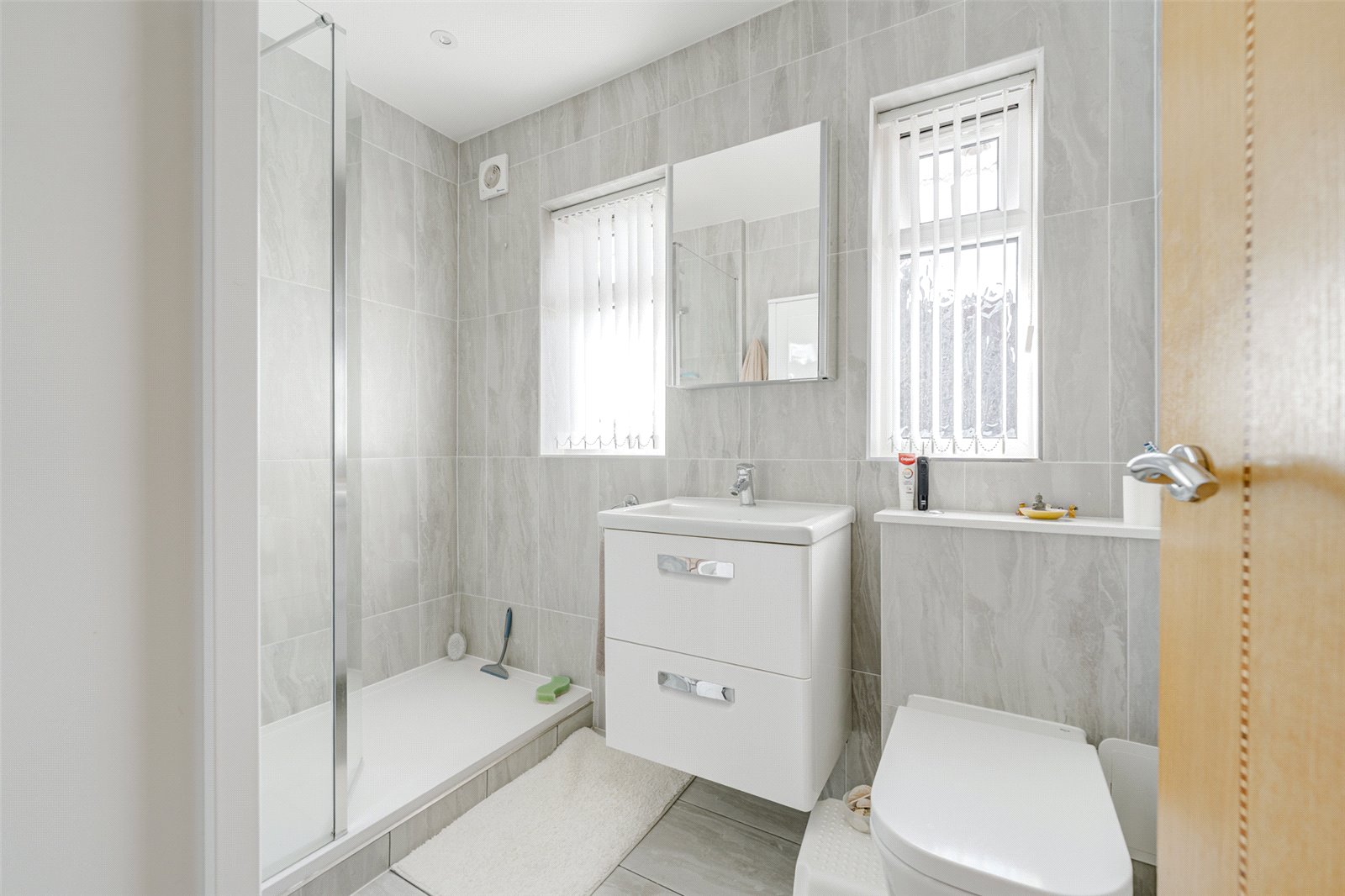 The well-equipped kitchen boasts a range of base and wall-level units, extensive worktop space, and room for essential appliances. The ground floor also benefits from two well-proportioned double bedrooms, one of which is currently being used as a dining room, offering flexibility to suit your needs. Both rooms provide ample space for wardrobes, drawers, and double beds. A contemporary shower room completes the ground floor, featuring a stylish walk-in shower, a vanity sink unit, and a WC.