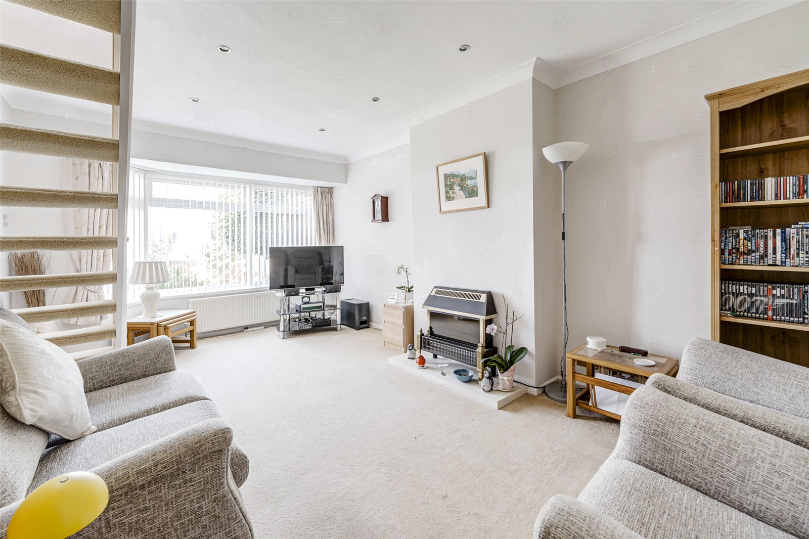 Upon entering, you are welcomed by a spacious hallway with ample room for coats and shoes, setting the tone for the rest of this well-presented home. The generously sized living room is bathed in natural light from the large front bay window and features an electric fireplace, creating a cosy yet spacious atmosphere. Stairs lead up to a boarded loft space, with potential and space to create a formal master bedroom subject to usual planning consents.