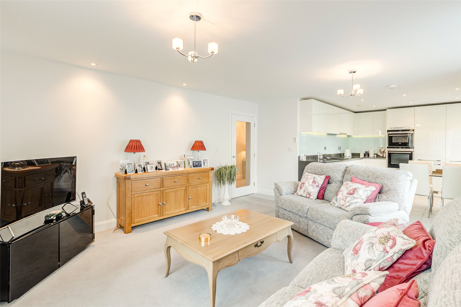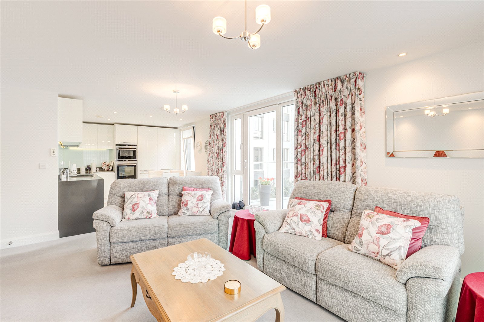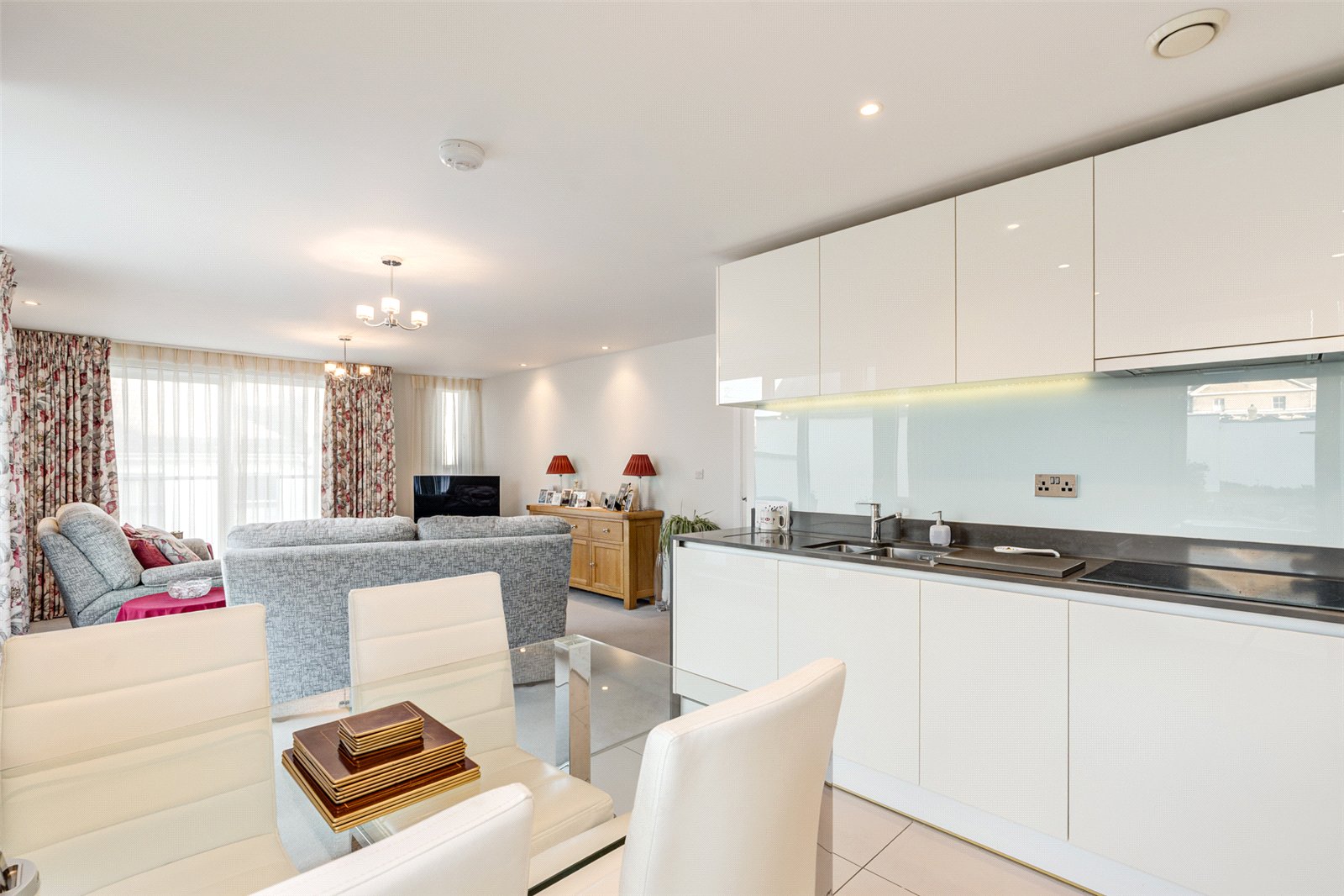 Upon entering, a welcoming hallway sets the tone for the rest of the apartment, leading through to the spacious open-plan kitchen and living area. The lounge enjoys a bright double aspect, allowing natural light to flood the space, while doors open onto a generous roof terrace, ideal for outdoor dining or relaxing.