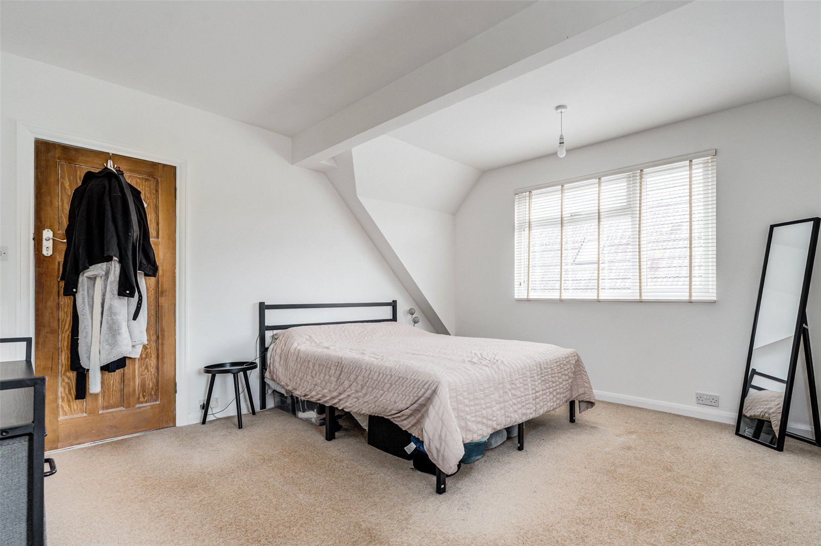 The elegant lounge boasts a charming bay window that floods the room with natural light, complemented by a tiled feature fireplace and generous space for various seating arrangements. Adjacent, the ground floor bedroom also benefits from a bay window and provides ample space for wardrobes and furnishings—ideal as a guest room, home office, or additional living area.