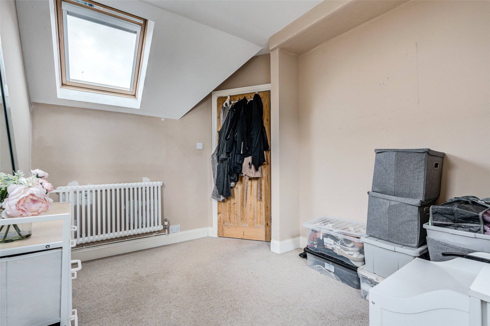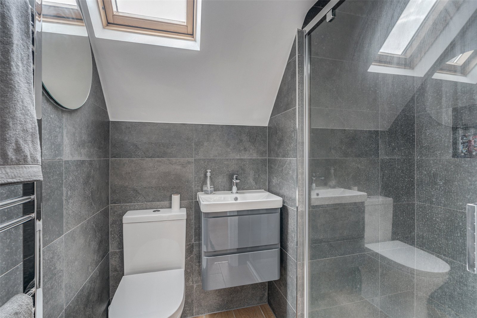 Conveniently located off the kitchen is a modern cloakroom complete with WC, a contemporary vanity sink unit, and a heated towel rail. A separate utility area houses the boiler, offers plumbing for a washing machine, and provides further storage.