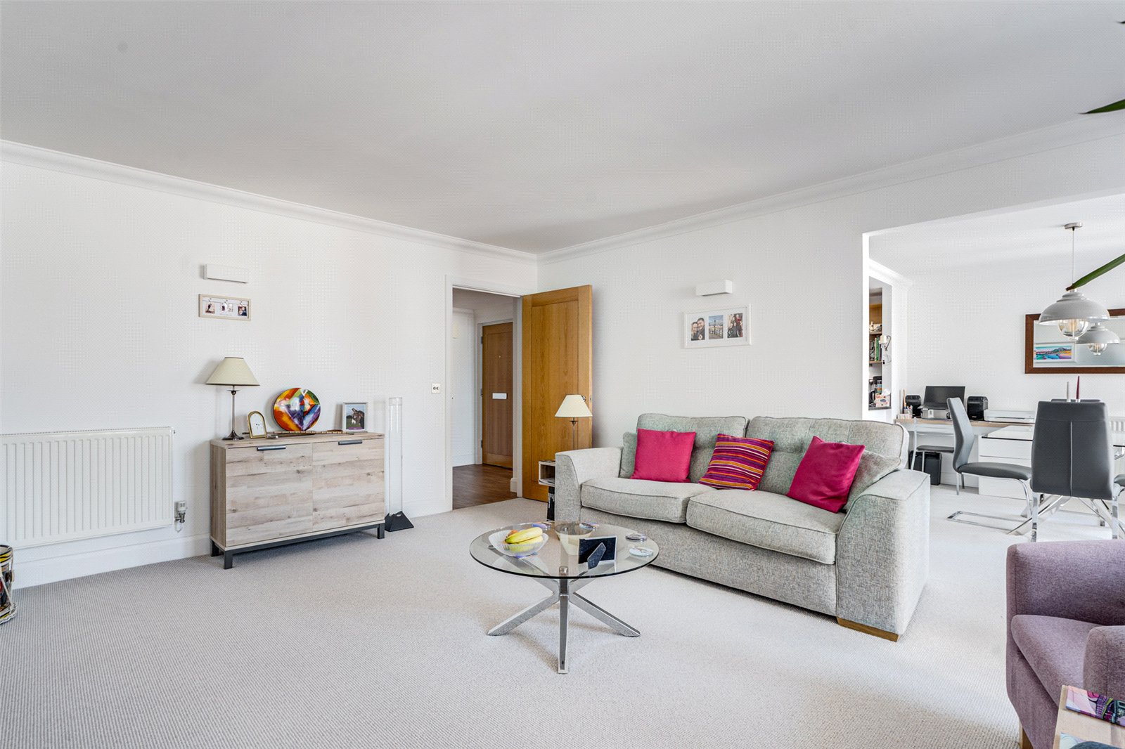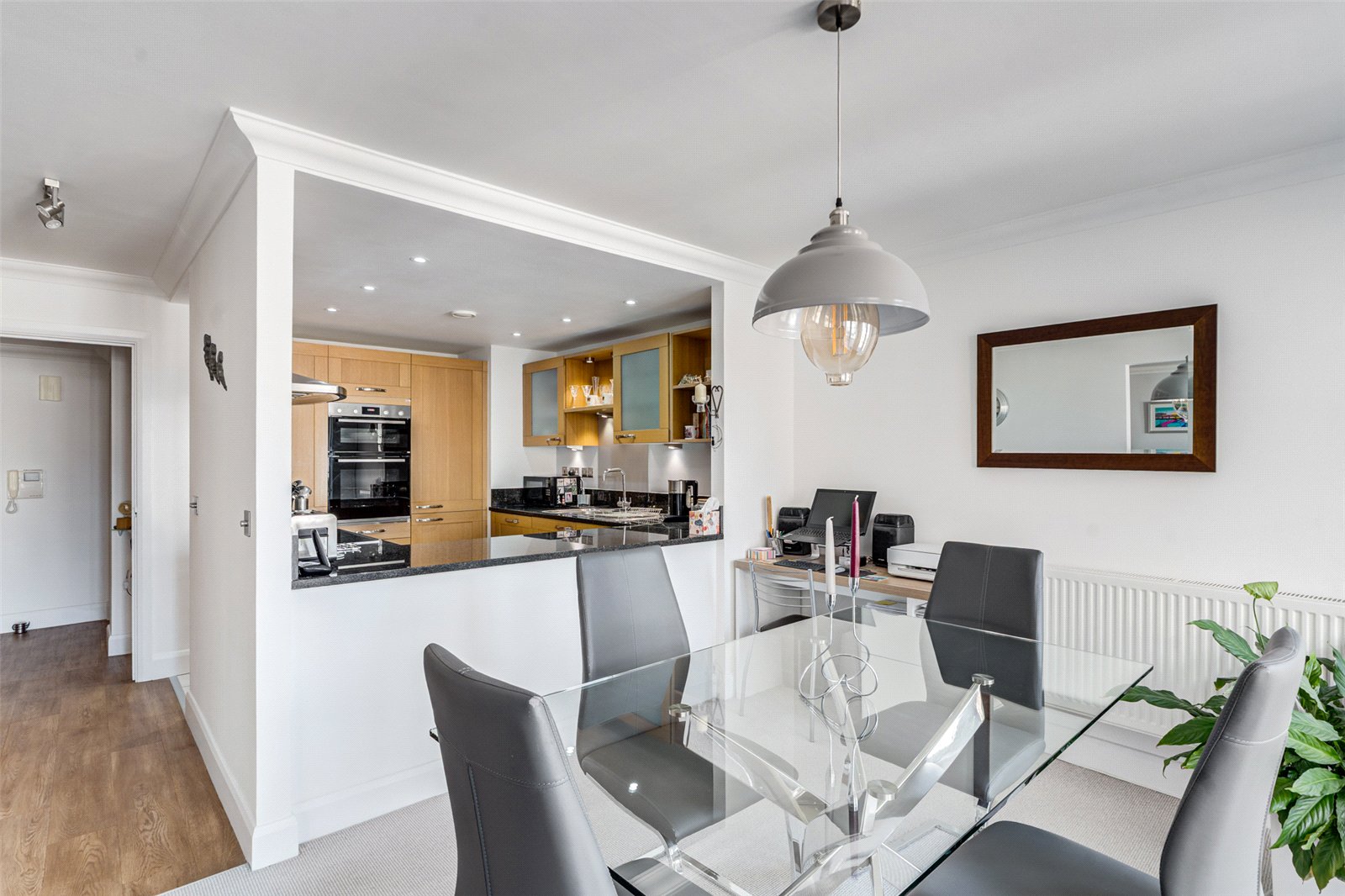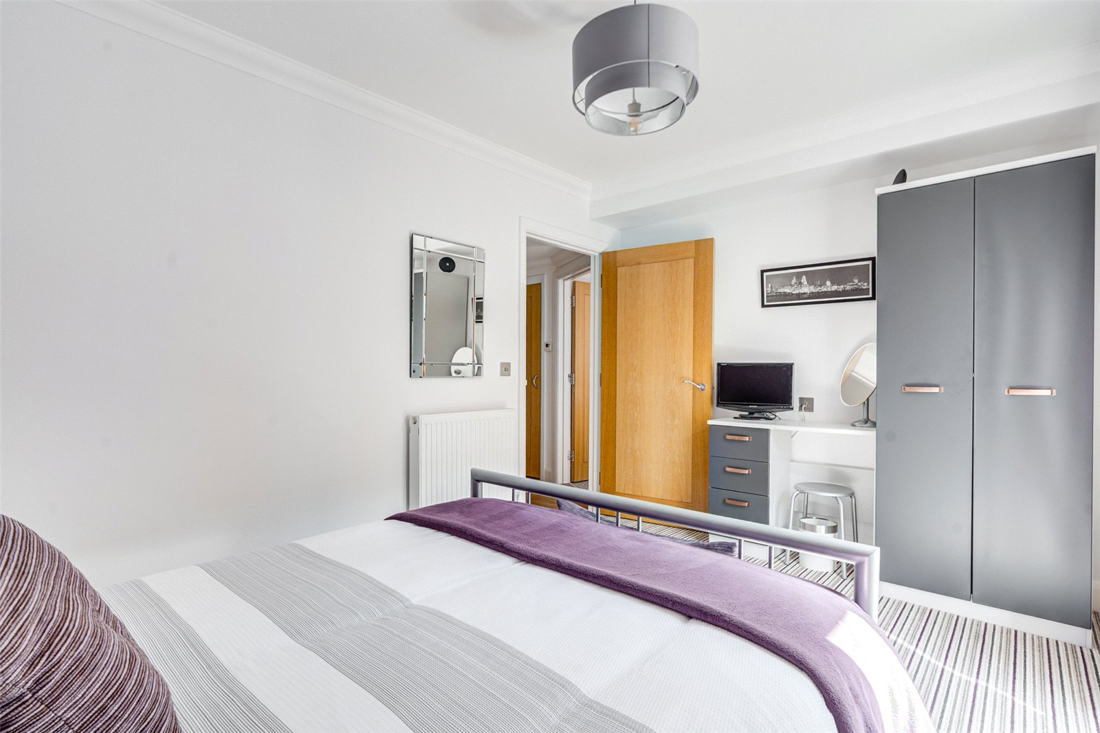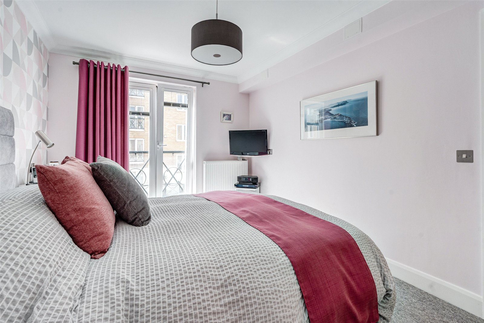 The impressive principal bedroom is a generous double, complete with a dressing area fitted with built-in wardrobes and access to a stylish en suite bathroom. The en suite features a bath, an enclosed shower cubicle, and a sleek vanity sink unit. The second double bedroom also offers excellent proportions and enjoys access to a Juliet balcony, with space for freestanding furniture.