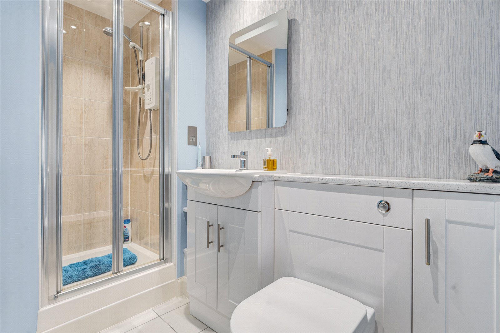 Completing the accommodation is a modern shower room, comprising an enclosed shower, vanity sink unit, and WC.