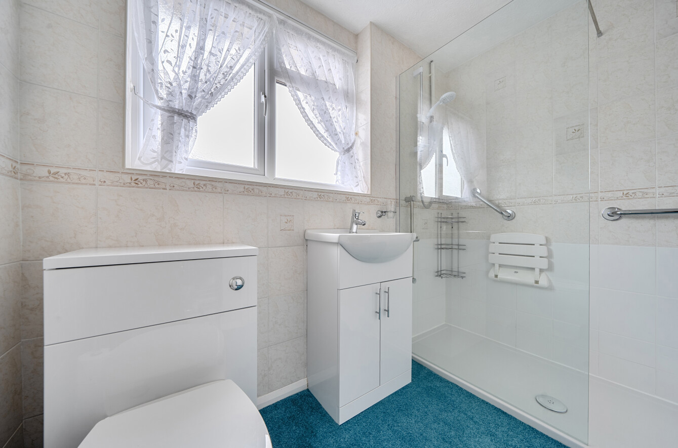 To the first floor, the landing leads to three well-proportioned bedrooms, comprising two generous double bedrooms, one of which has fitted wardrobes, and a good-sized single bedroom, ideal for use as a child’s room, home office, or guest bedroom. The recently renovated family bathroom is fitted with a walk-in shower, wash hand basin, WC, and heated towel rail.