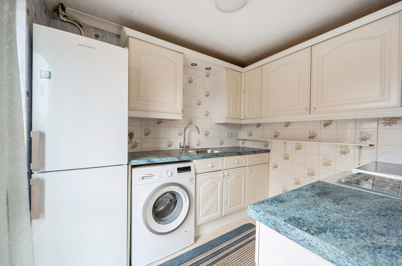 The fitted kitchen, positioned to the rear of the property, provides a practical layout with a range of wall and base units along with space for essential appliances.
