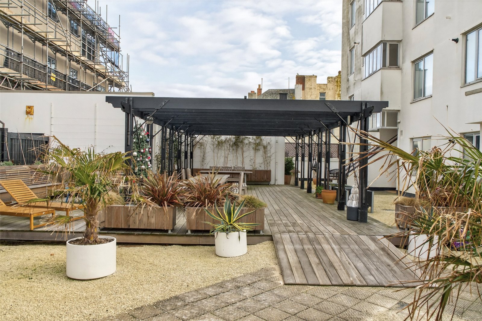 Externally, the south-facing balcony offers plenty of space for outdoor seating while taking in the stunning sea views. Residents also benefit from access to the communal gardens, complete with benches and a pergola – perfect for relaxing in the summer sun.