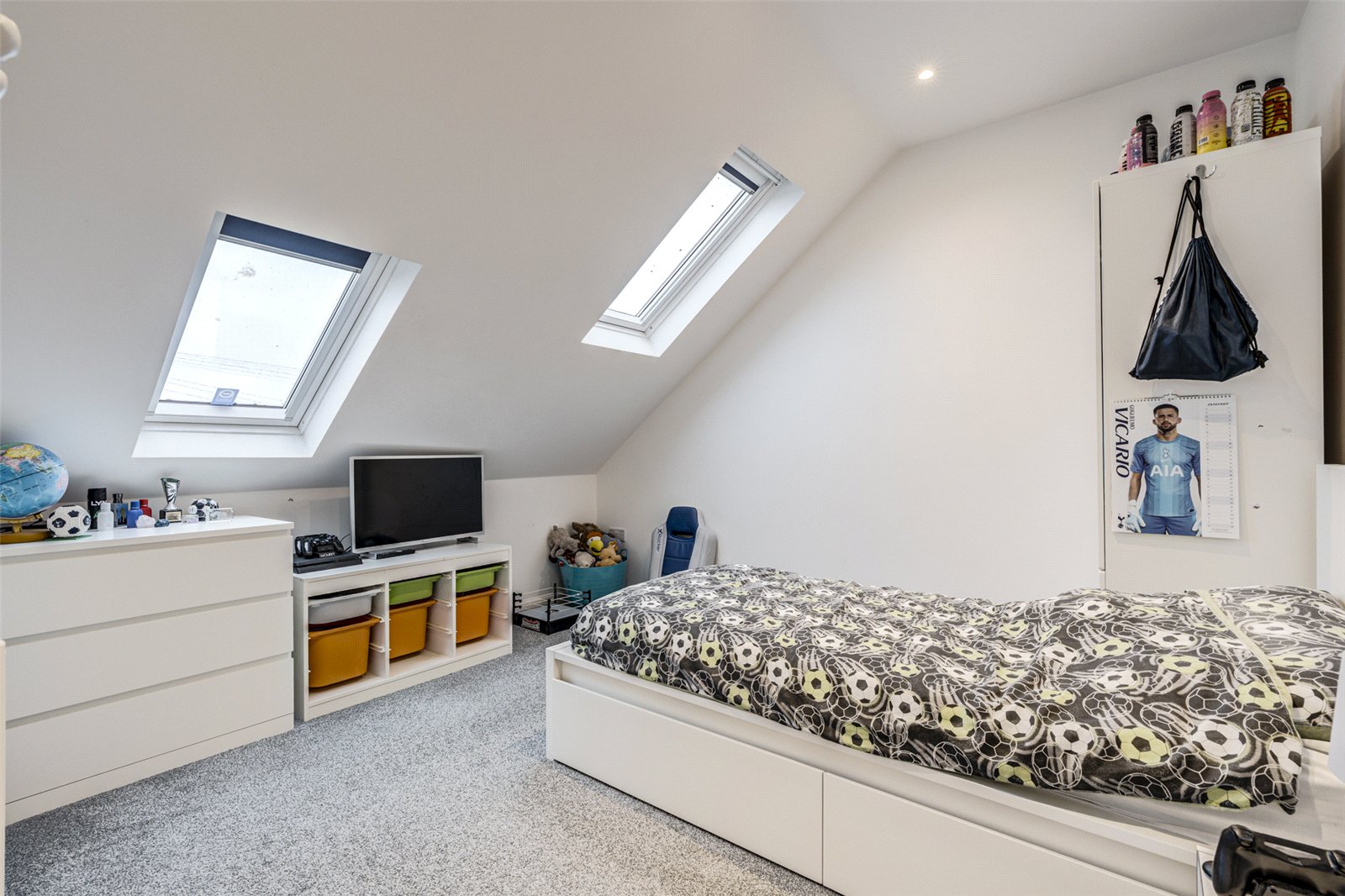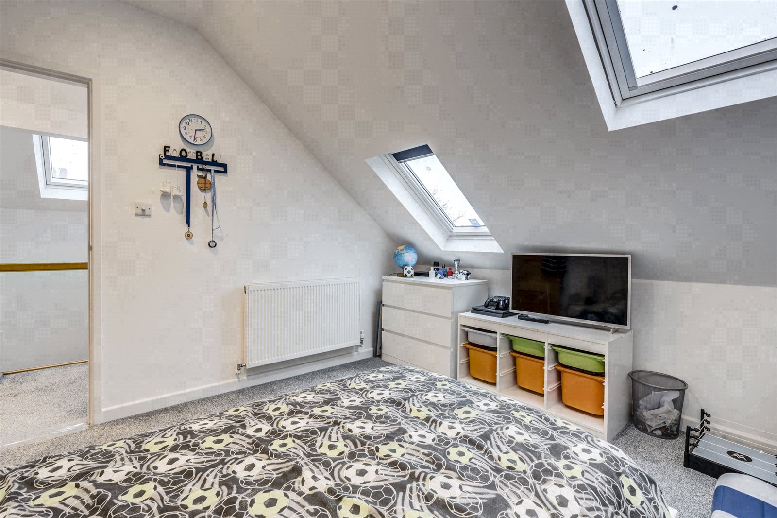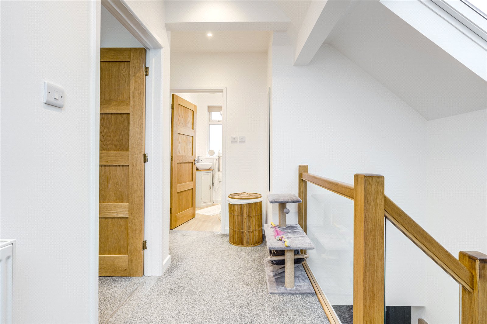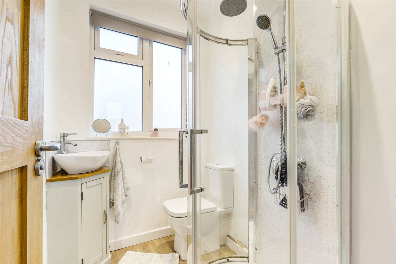 To the first floor, there are two further double bedrooms, both offering space for bedroom furniture, with the larger room benefiting from two Velux windows. Serving the first floor is a contemporary shower room fitted with an enclosed shower, vanity sink unit, and WC.