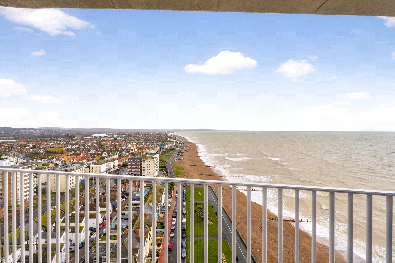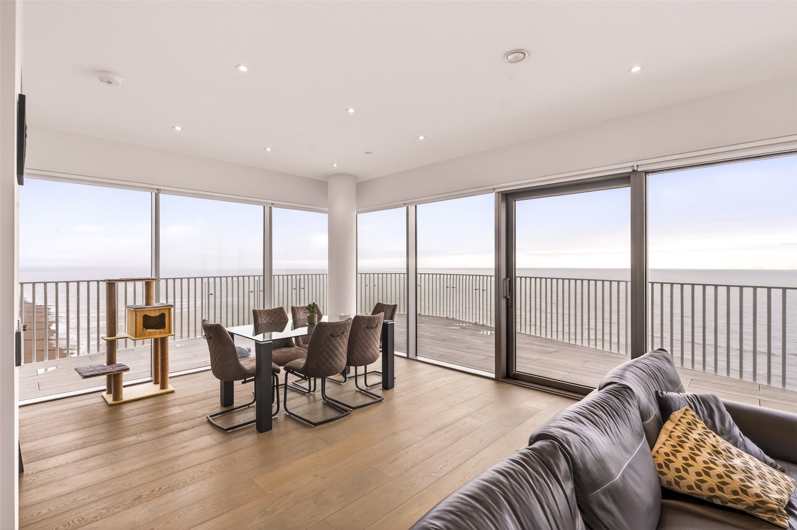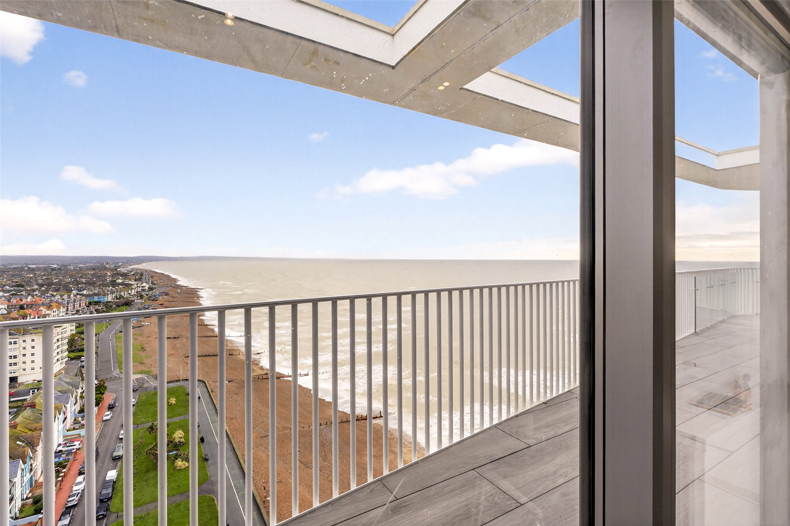 Externally, the penthouse truly excels with a wrap-around balcony offering sweeping views towards Brighton and out across the English Channel—an exceptional space for outdoor dining, entertaining, or simply enjoying coastal sunsets.